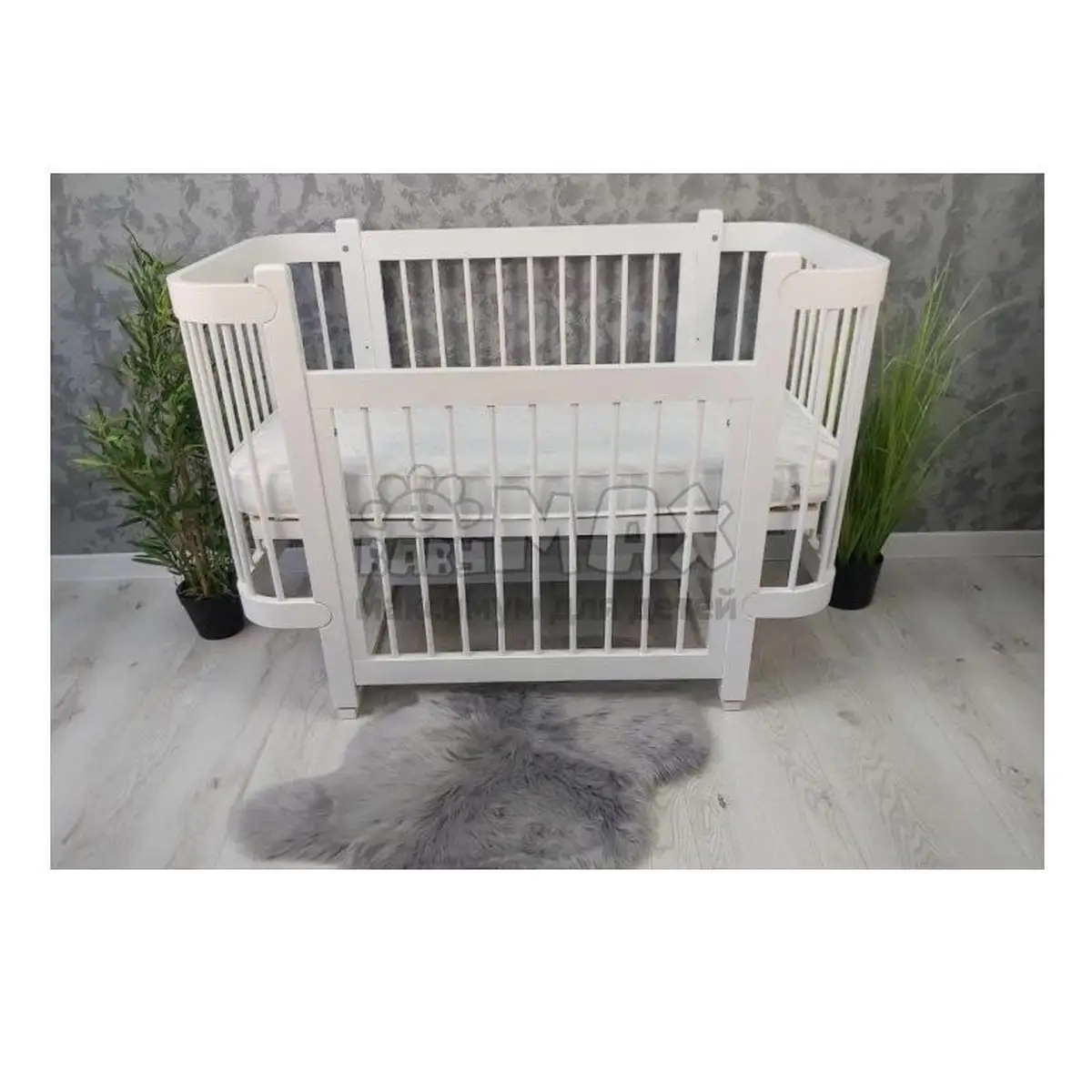 1. Возможность использовать кроватку как приставную или детский диванчик (для этого нужно снять боковую подвижную стенку).