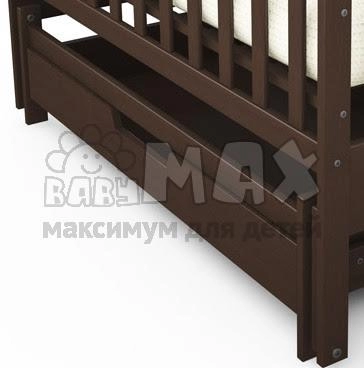 Ящик Вудман шоколадного цвета – еще одно изделие, заслуживающее внимания. Для его производства известный украинский производитель использовал износостойкий и красивый древесный массив бука. Оригинальные природные узоры просвечиваются сквозь слой эко-краски на водной основе, что делает его еще привлекательнее. Если детская комната оформлена в шоколадных тонах, то такой ящик Вудман станет отличным дополнением. Прочные направляющие телескопического типа делают эксплуатацию удобной и легкой – достаточно небольшого усилия, чтобы выдвинуть ящик Вудман из-под кроватки и затем переместить его обратно. Когда ребенок подрастет, он может самостоятельно складывать там игрушки.