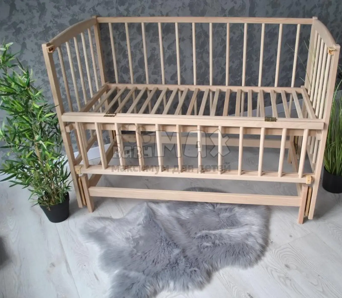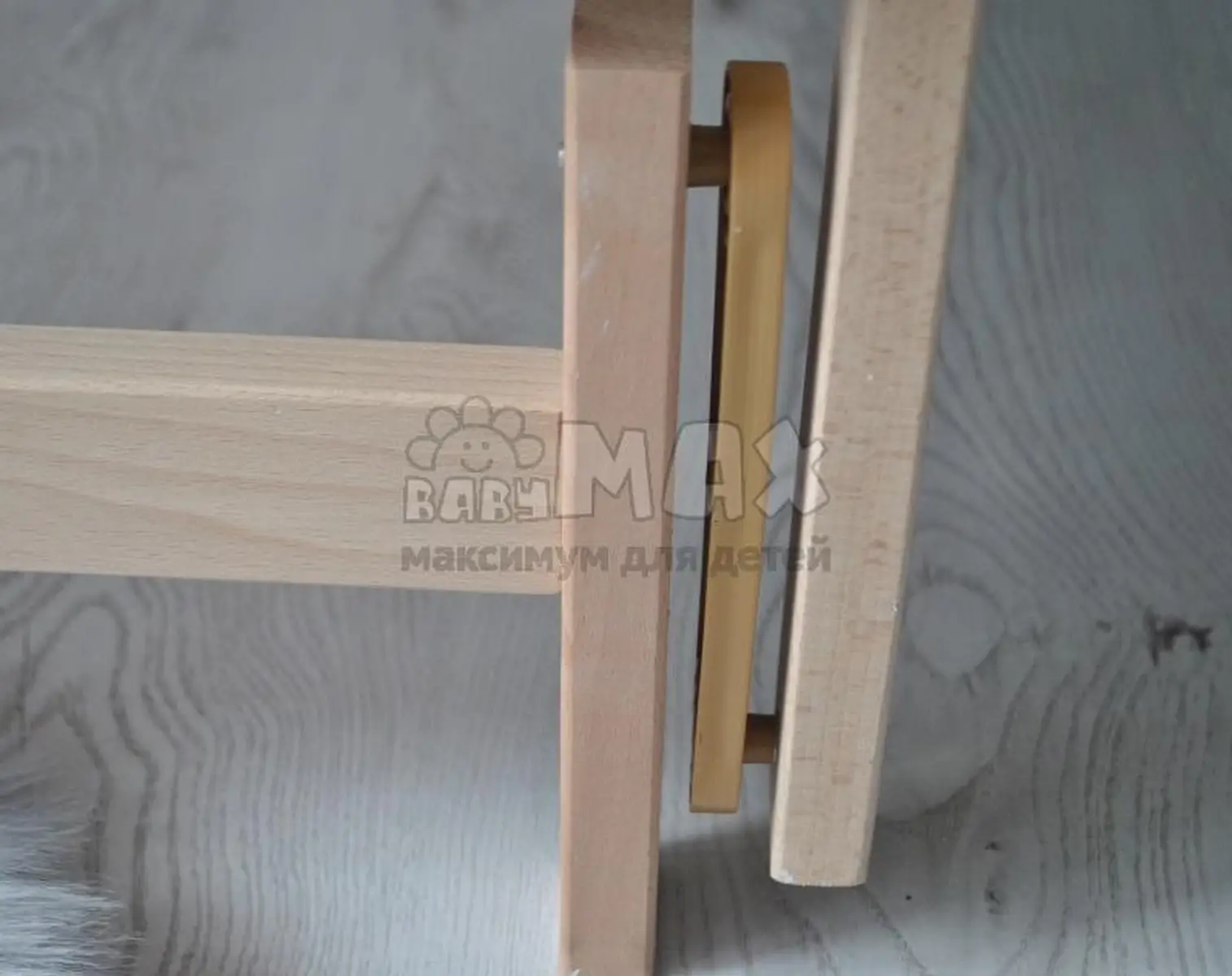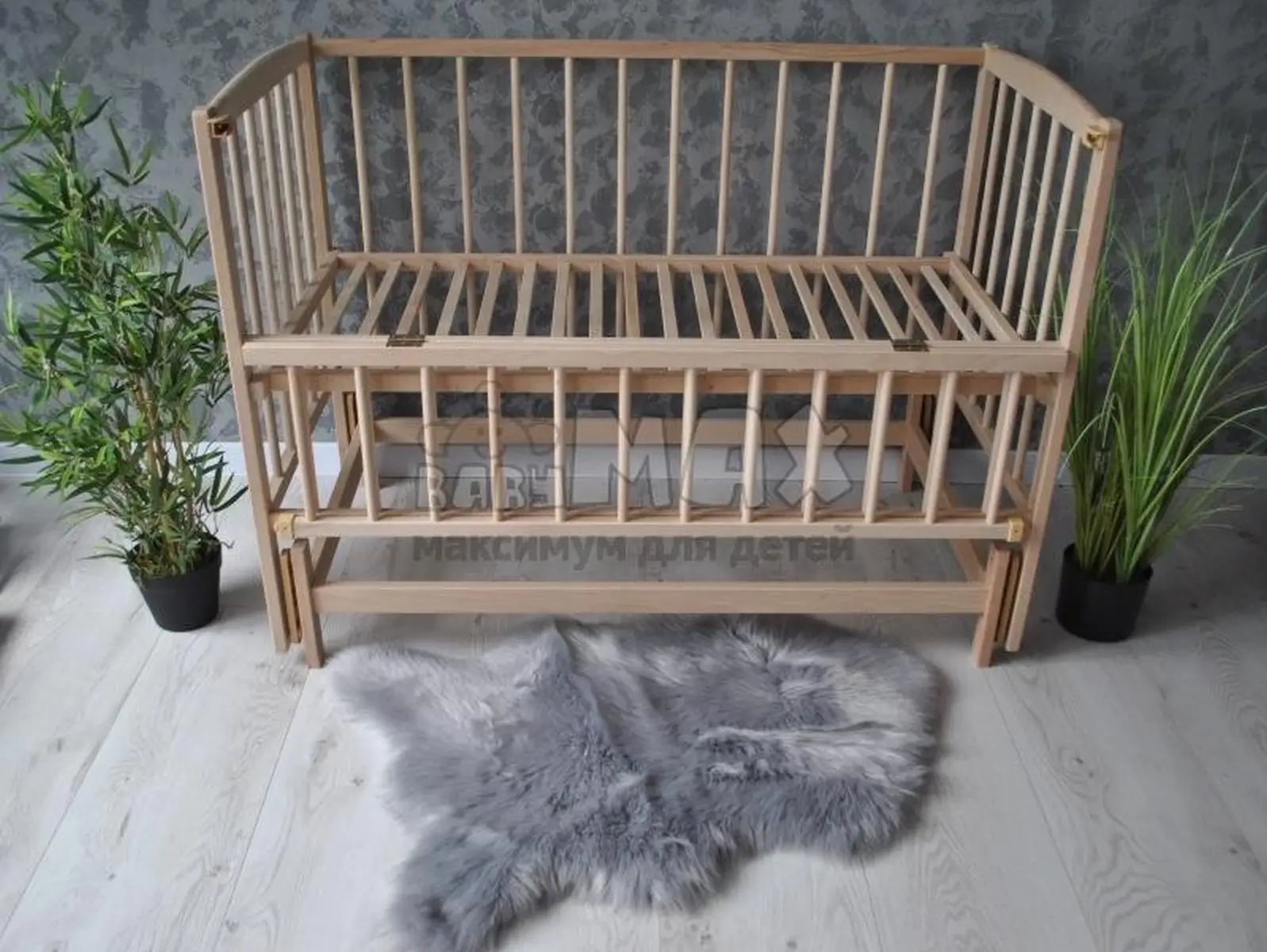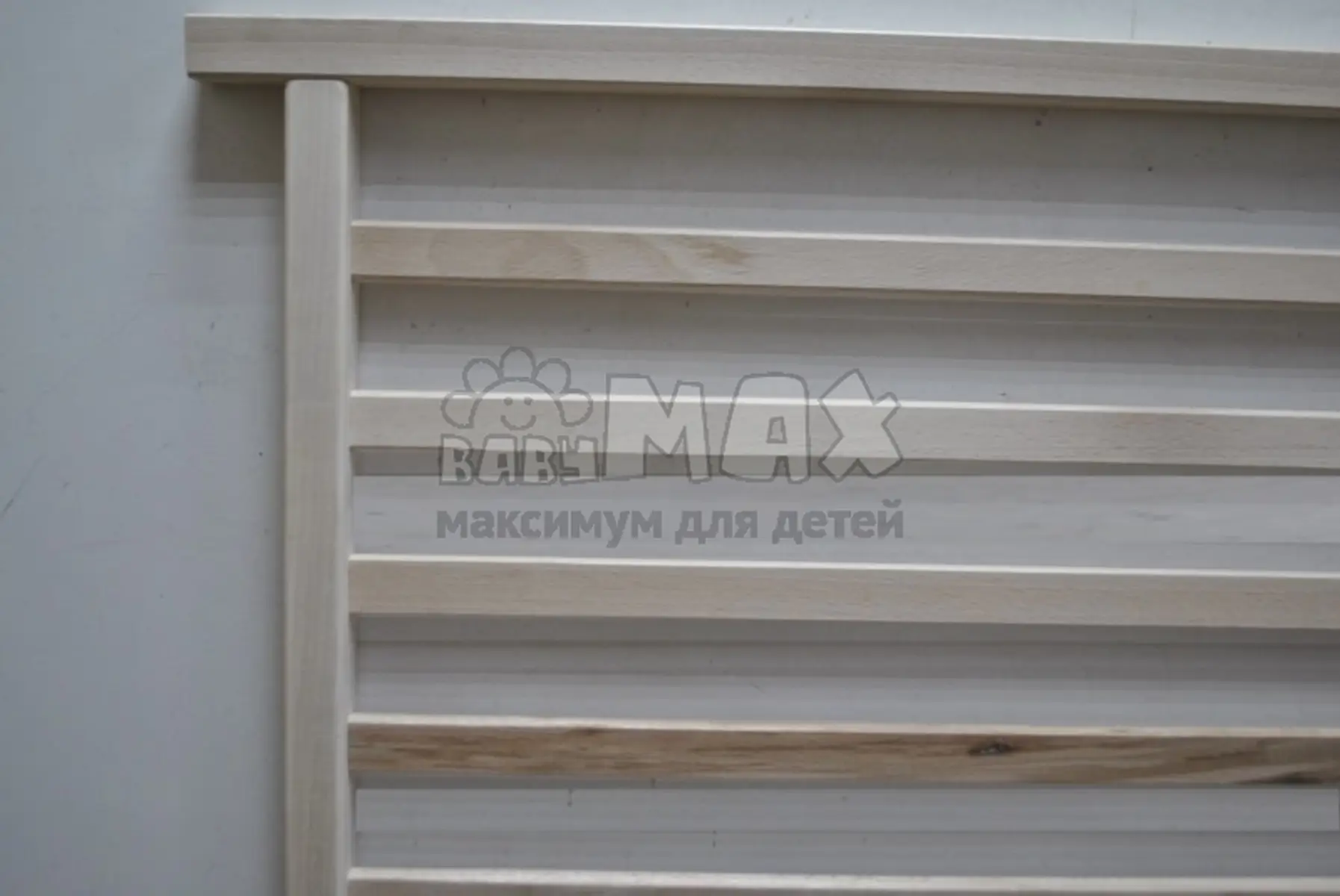 Кроватка выполнена из натурального массива дерева бук. Изделие не имеет покрытия краской или лаком, которые могут содержать вредные вещества. Поверхность качественно отшлифована для предотвращения травмирования ребенка.