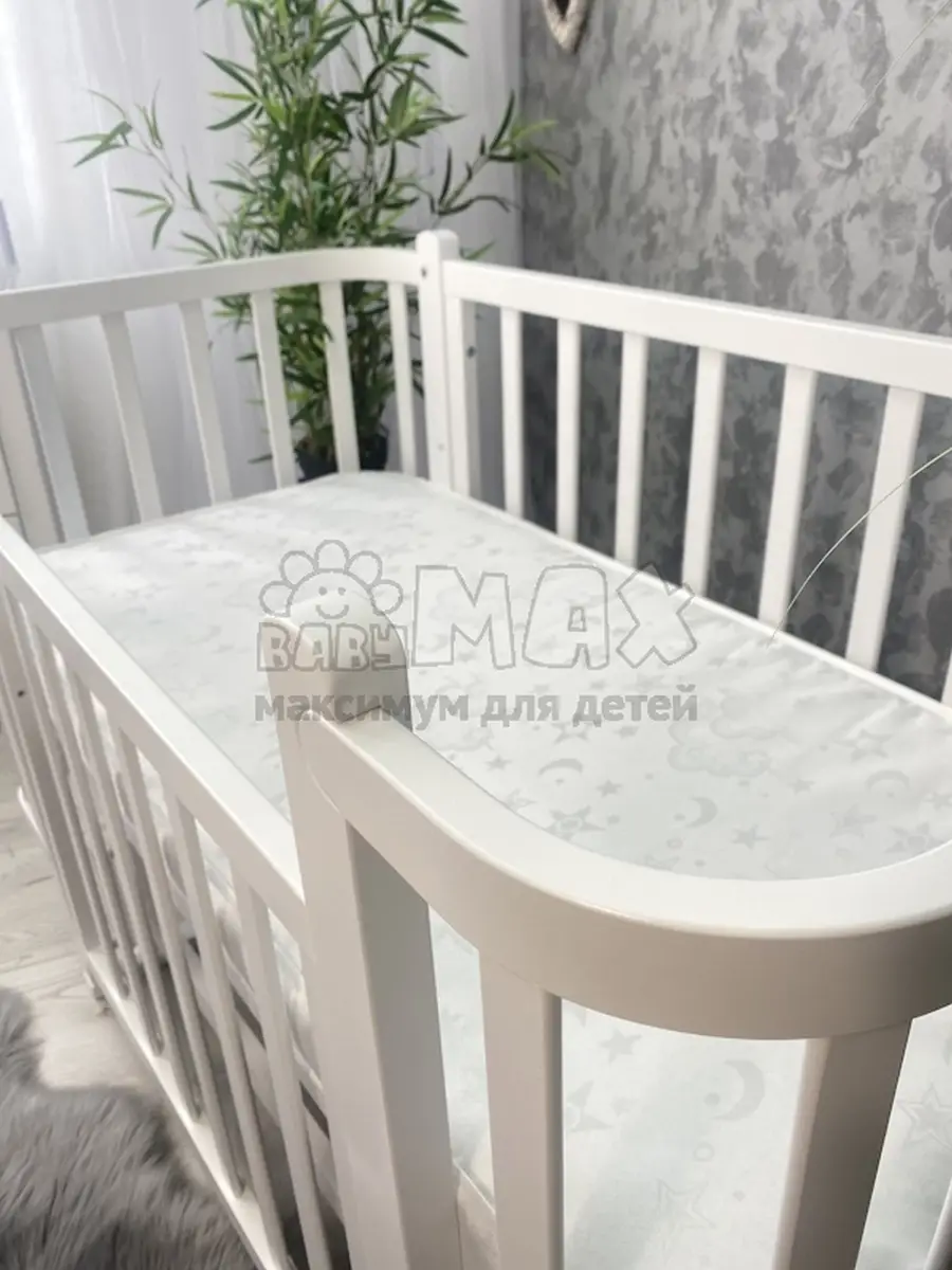 6. Колеса входят в комплект.Дополнительные опции Цена Кроватка + ящик (45х60х14 см) 8450 грн Матрас Жакард (кокос, поролон, кокос) 120х60х8 см + 1500 грн Пеленальный комод Выбрать Комплект постельного белья 120х60 см Выбрать