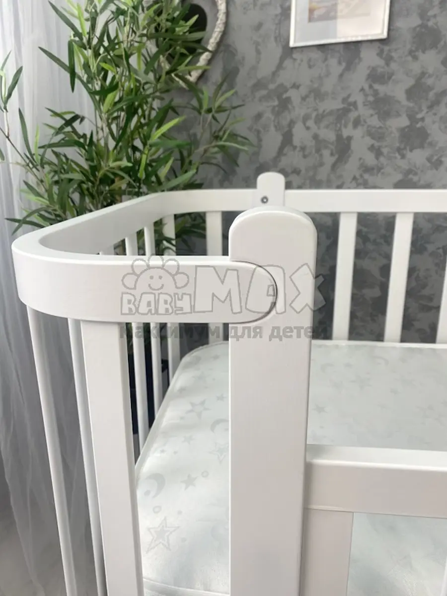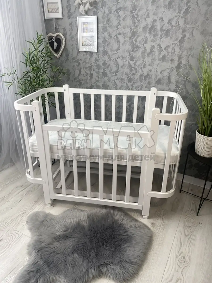 2. Возможность использовать кроватку как приставную или детский диванчик (для этого нужно снять боковую подвижную стенку).