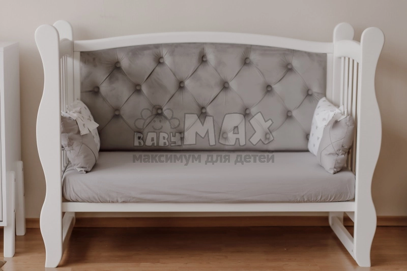 Продольный маятниковый механизм, который также присутствует в стандартной версии кроватки, поможет малышу быстрее уснуть. Кстати, при необходимости механизм качания можно зафиксировать.