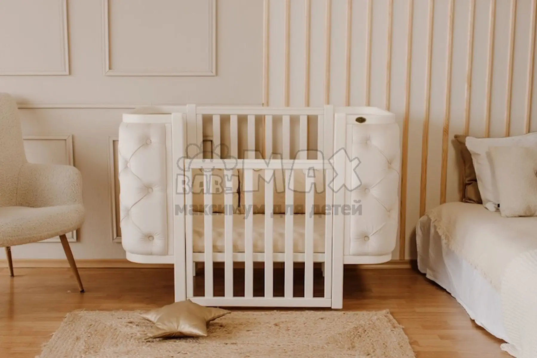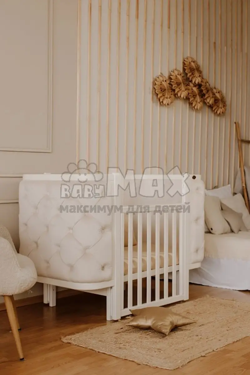 2. Возможность использовать кроватку как приставную или детский диванчик (для этого нужно снять боковую подвижную стенку).