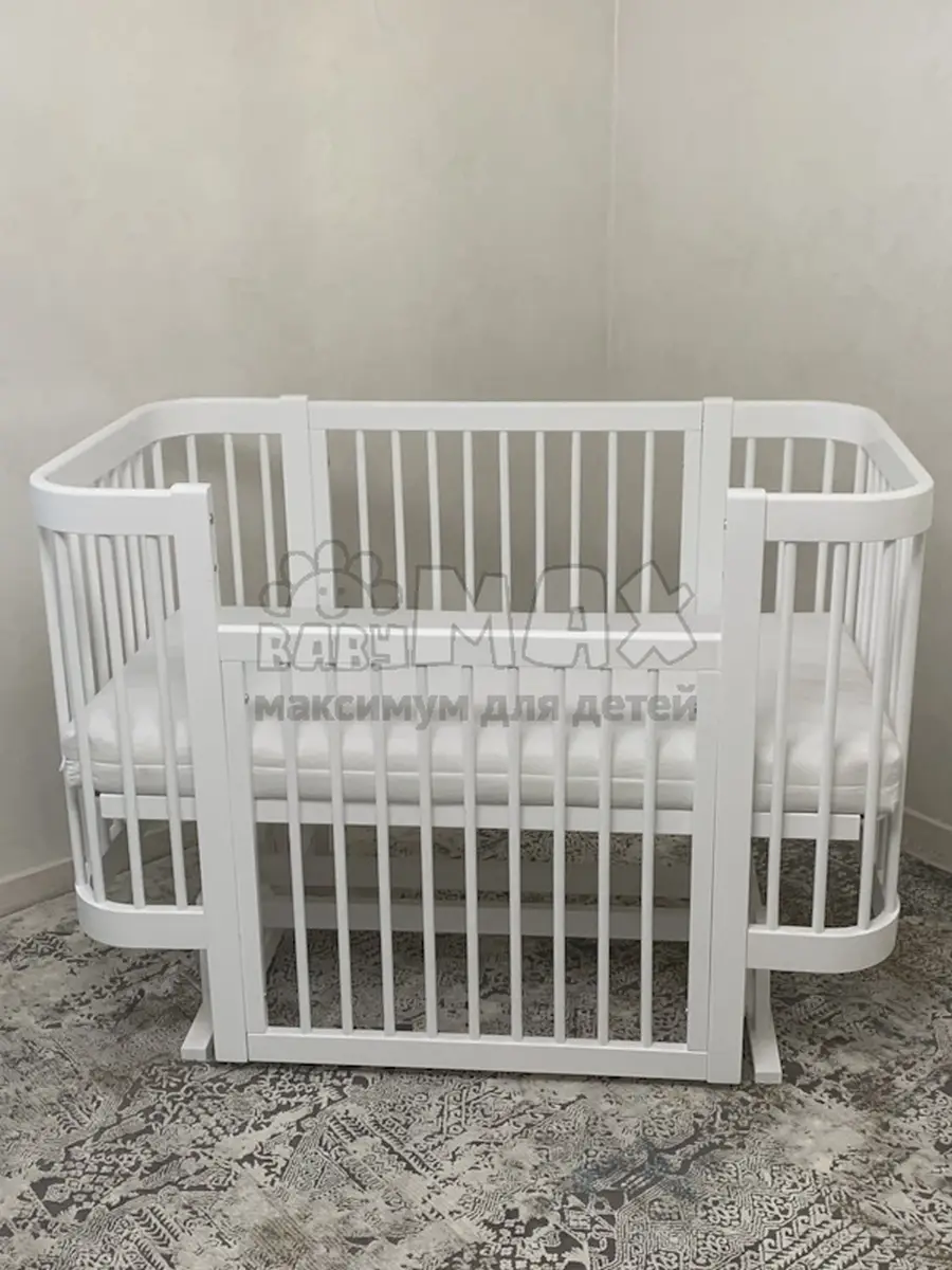 1. Возможность использовать кроватку как приставную или детский диванчик (для этого нужно снять боковую подвижную стенку).