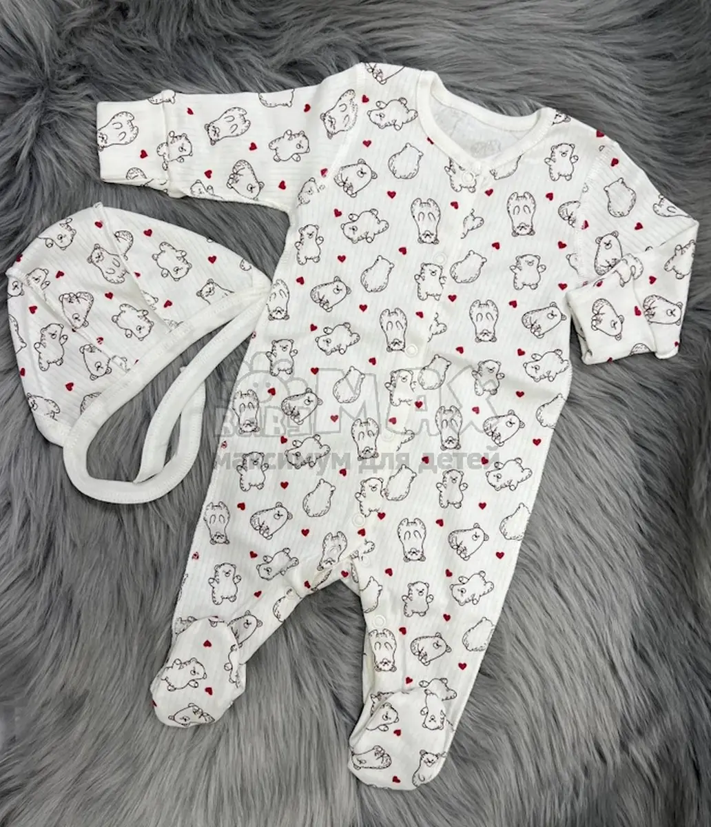 - Комплект: шапочка + распашонка + ползунки