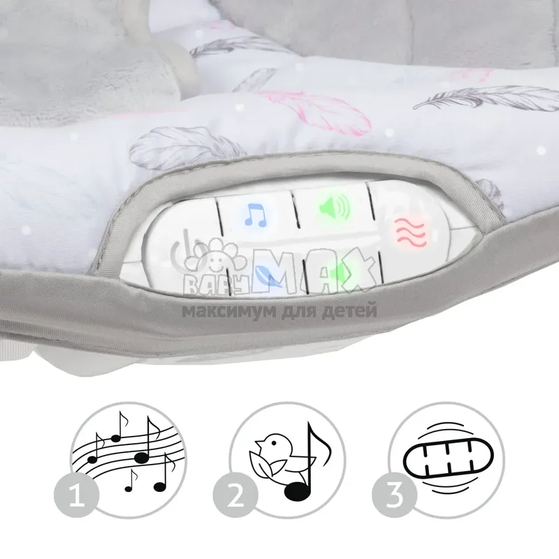 5. Сенсорный модуль, содержащий 10 приятных мелодий с регулировкой громкости и вибрацией, которые успокаивающе действуют на ребенка.