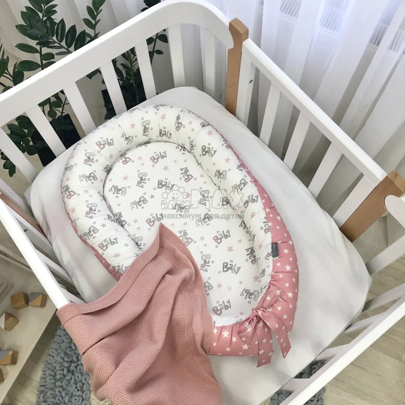 2. Бортики можно стянуть специальной нитью, которая уже вшита в кокон, и зафиксировать бантом, таким образом можно уменьшать или увеличивать размер кокона-гнездечка.