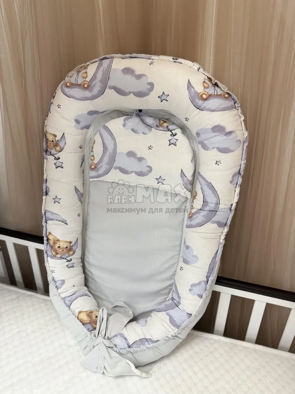 Кокон для новорожденного Ведмедик Медвежонок на месяце Серый