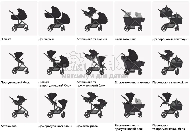 2. Блоки устанавливаются на раму коляски бок о бок