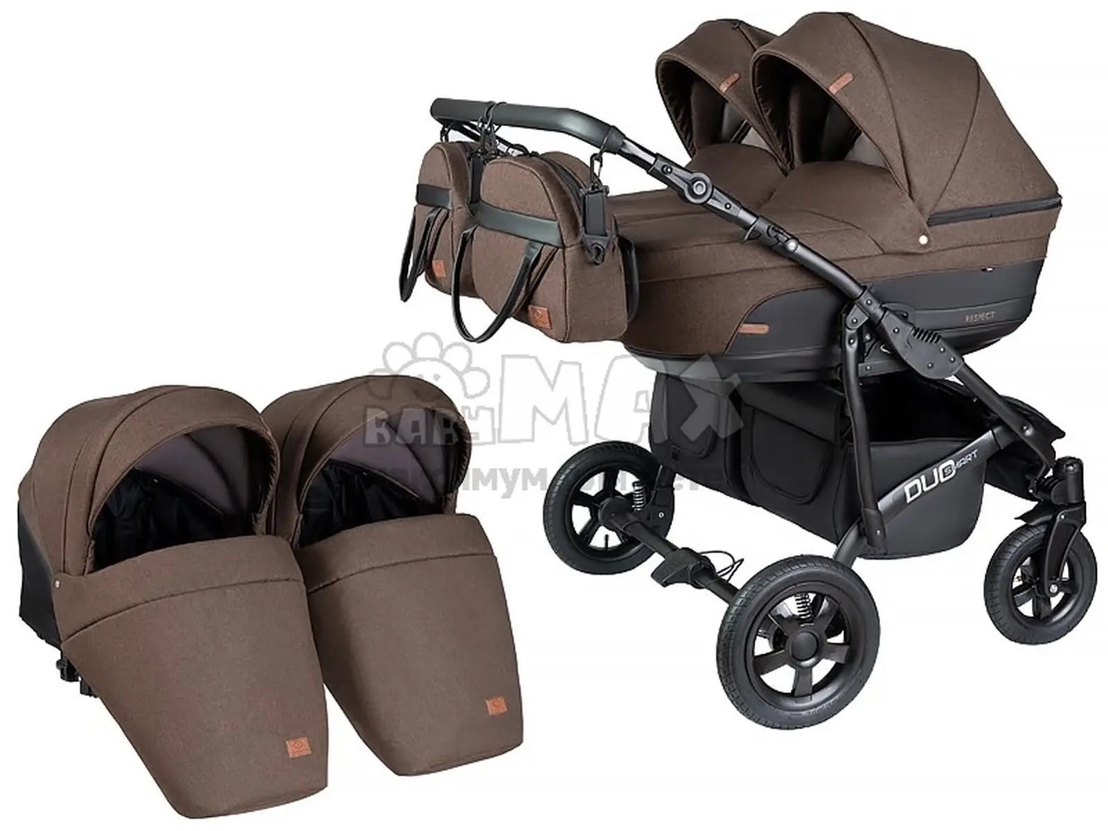 Коляска для двойни 2 в 1 - Angelina Respect Duo (Коричневый)