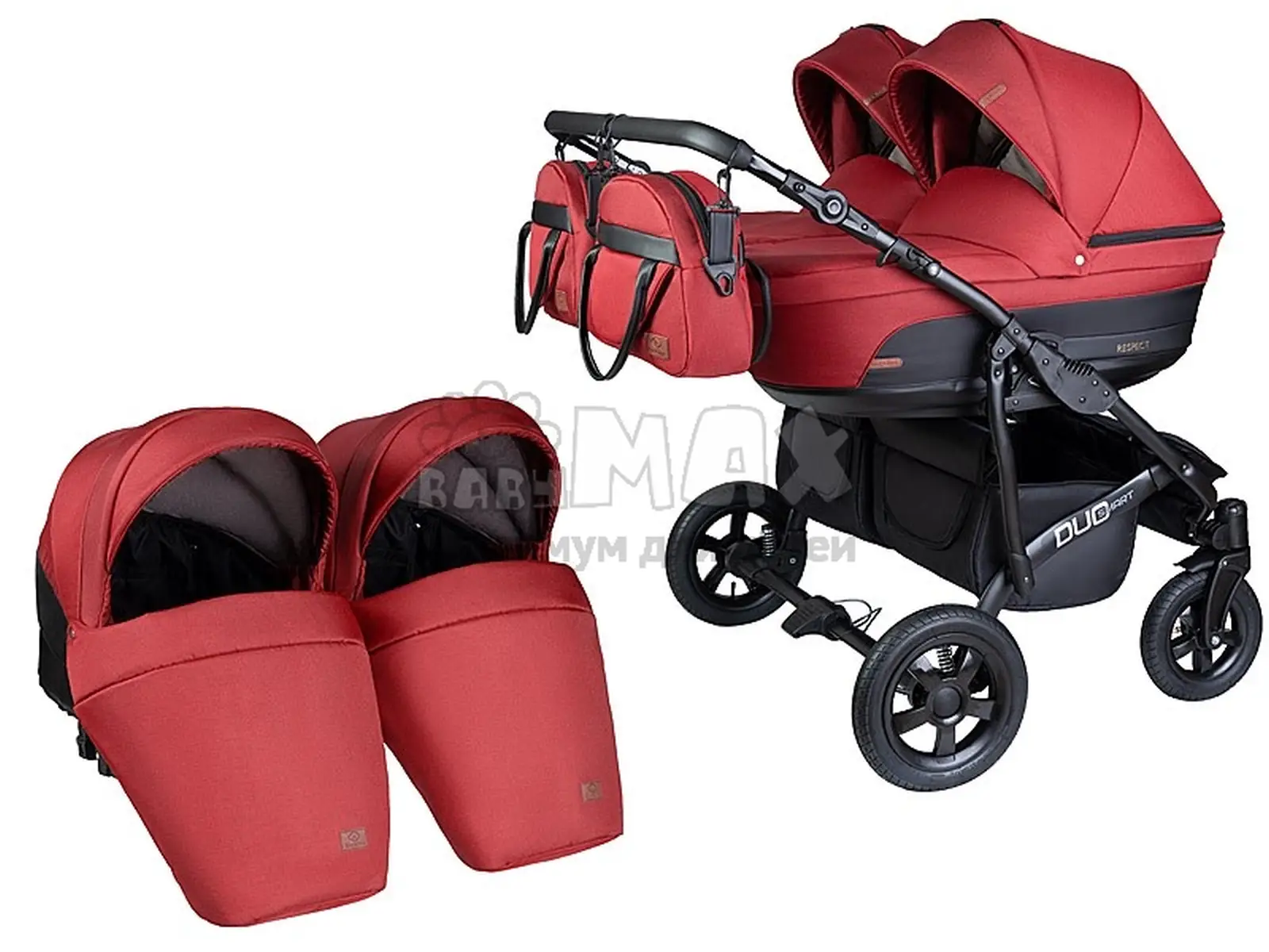 Коляска для двойни 2 в 1 - Angelina Respect Duo (Красный)