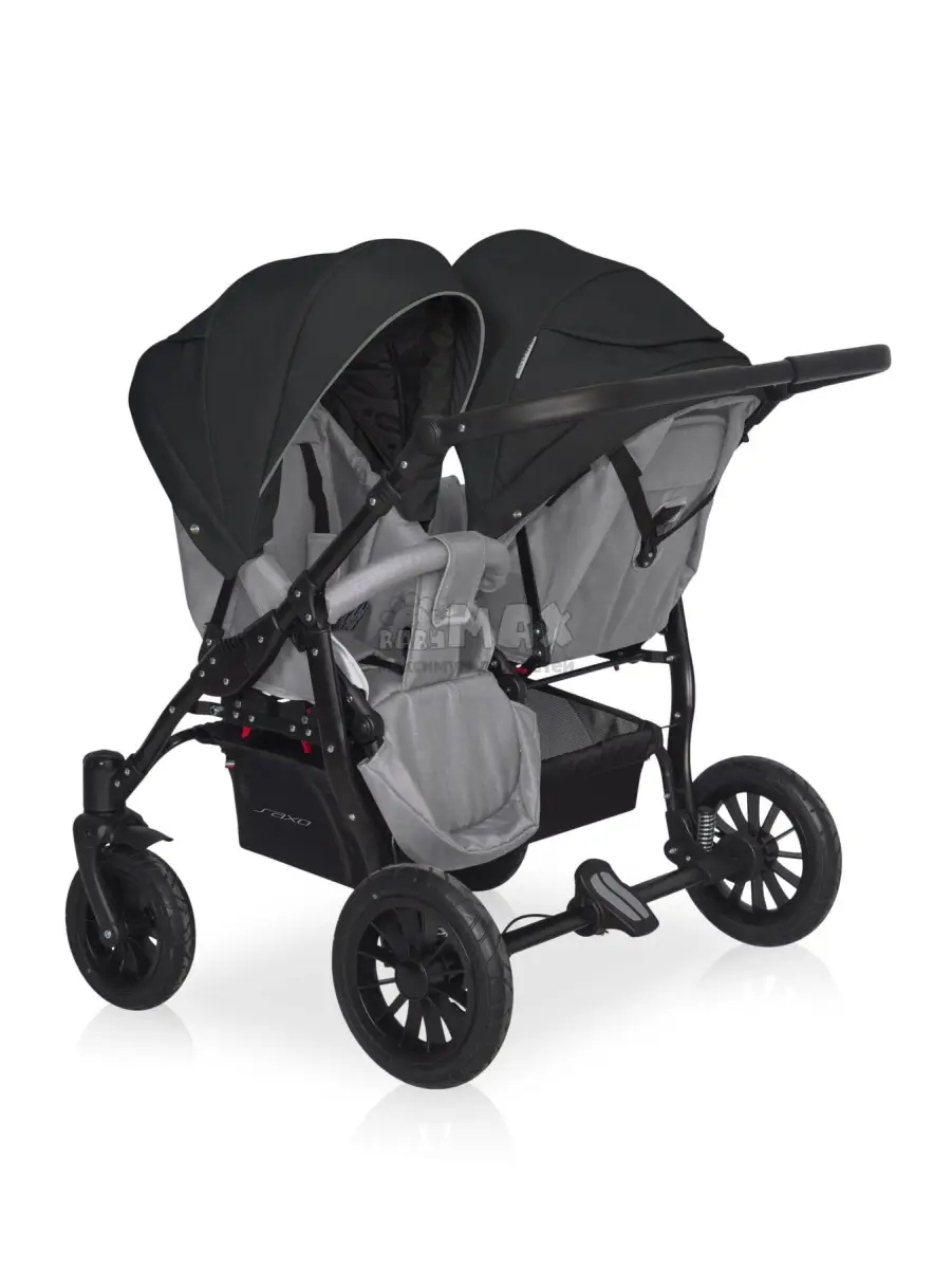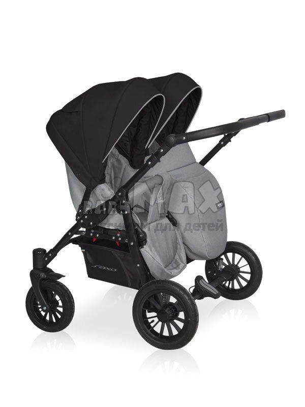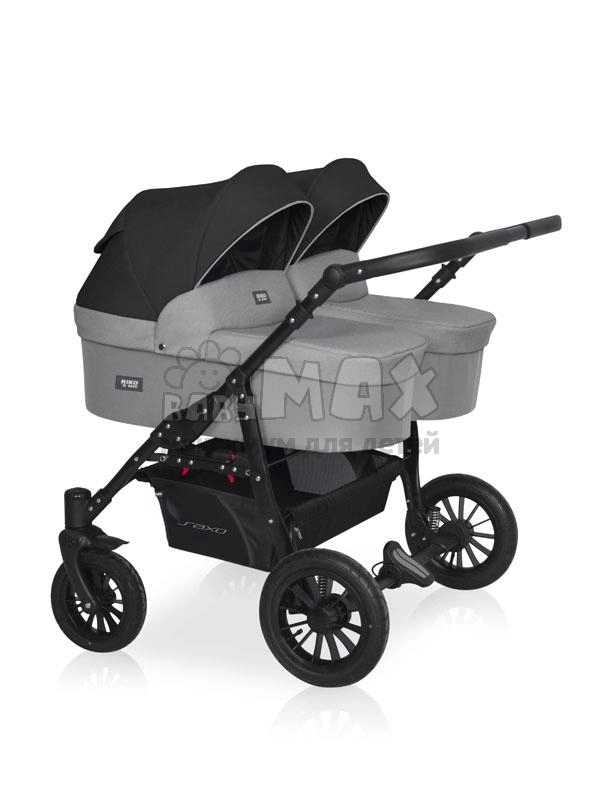 Коляска для двойни 2в1 Riko Saxo - универсальный вариант коляски для погодок. Главное преимущество изделия, в возможности использовать 2 блока : люльку и прогулочный блок. Они легко устанавливаются на алюминиевой шасси коляски. Расположение блоков проводится параллельно (бок о бок). Конструкция продумана так что малыши находятся на одном уровне, потому родители смогут наблюдать за малышами, так как они будут находиться в поле их зрения.