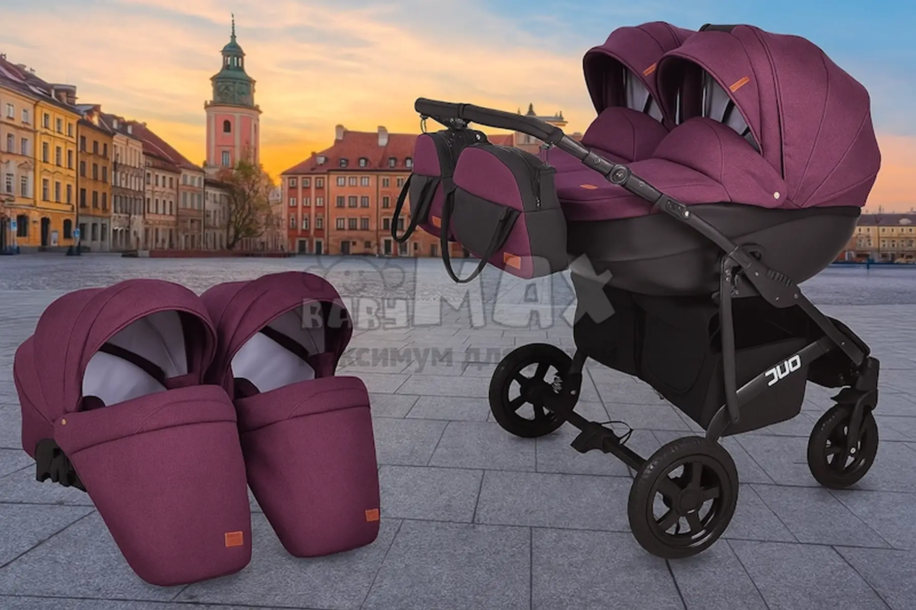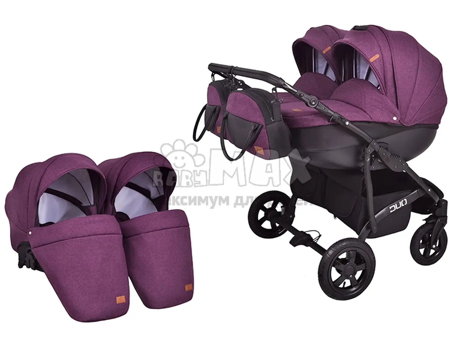 Фиолетовая коляска 2в1 для двойни Angelina Discovery Duo.