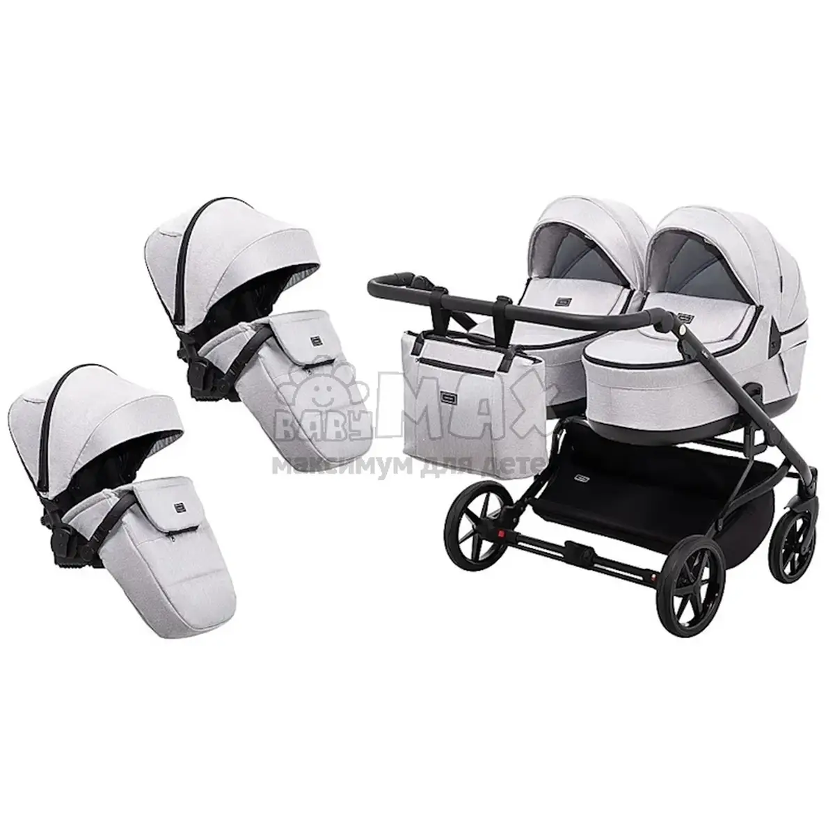 Она оснащена двумя отдельными блоками: 2 люльками и 2 прогулочных блока. Это означает, что Вы сможете адаптировать коляску под каждого малыша.