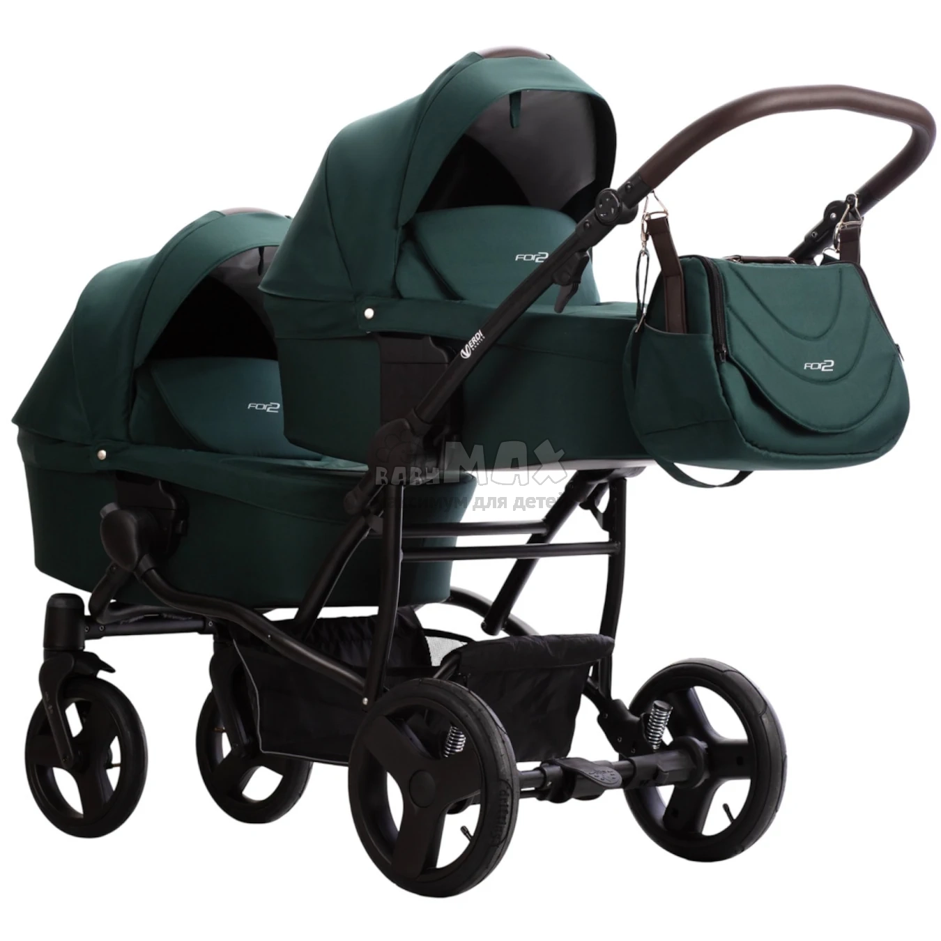 Зеленая коляска 2в1 для двойни Verdi For 2 2025