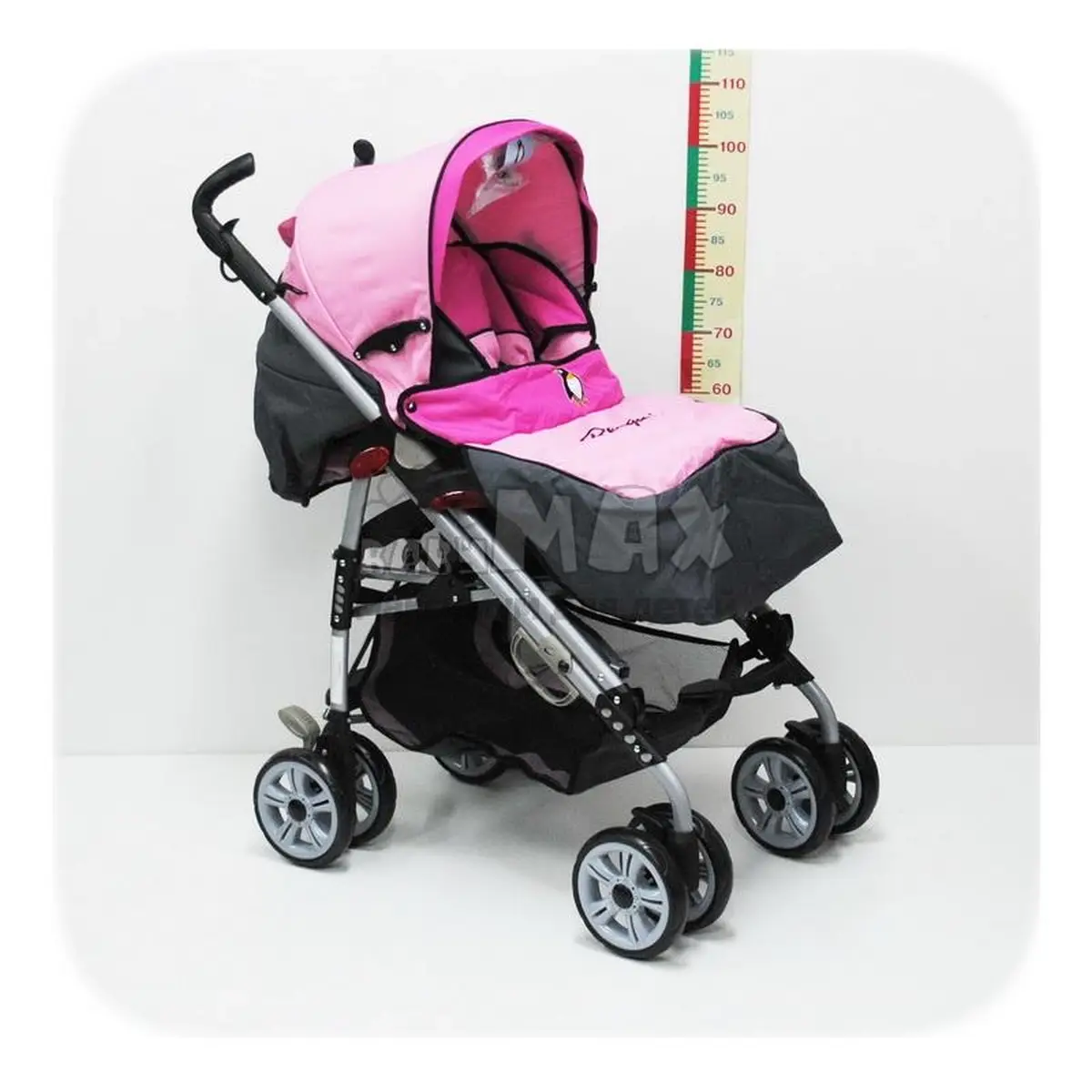 Коляска трость - Pinguin (Серо-розовый)