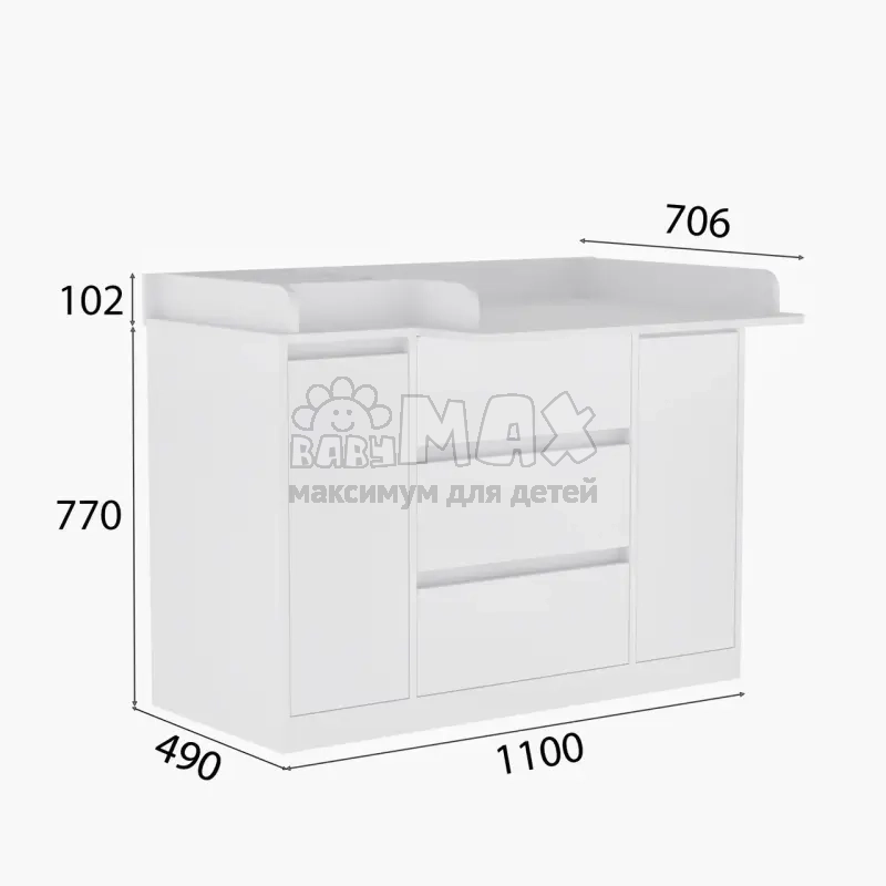 Этот пеленальный комод сочетает вместительность, удобство и безопасность. Широкая пеленальная зона с эргономичным расположением предназначена для максимального удобства при уходе за ребенком.