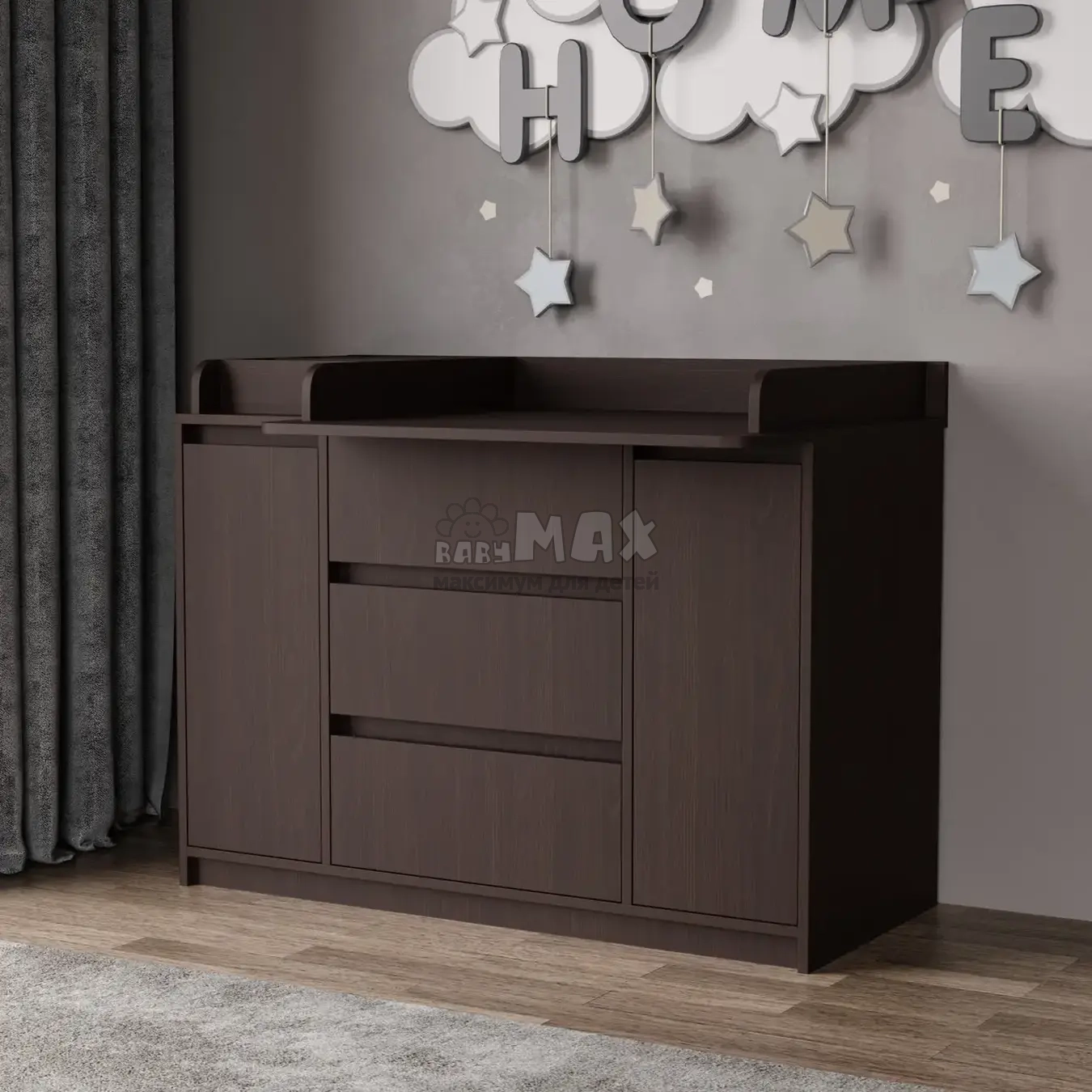 Комод пеленальный Furnigrade ПС-4 110 см Венге – современное решение для организации пространства в детской комнате. Благодаря сочетанию функций комода и пеленального столика он становится практичным инструментом для ежедневного ухода за малышом.