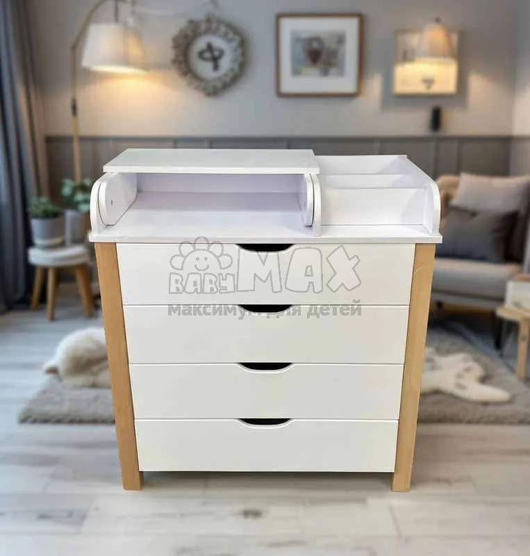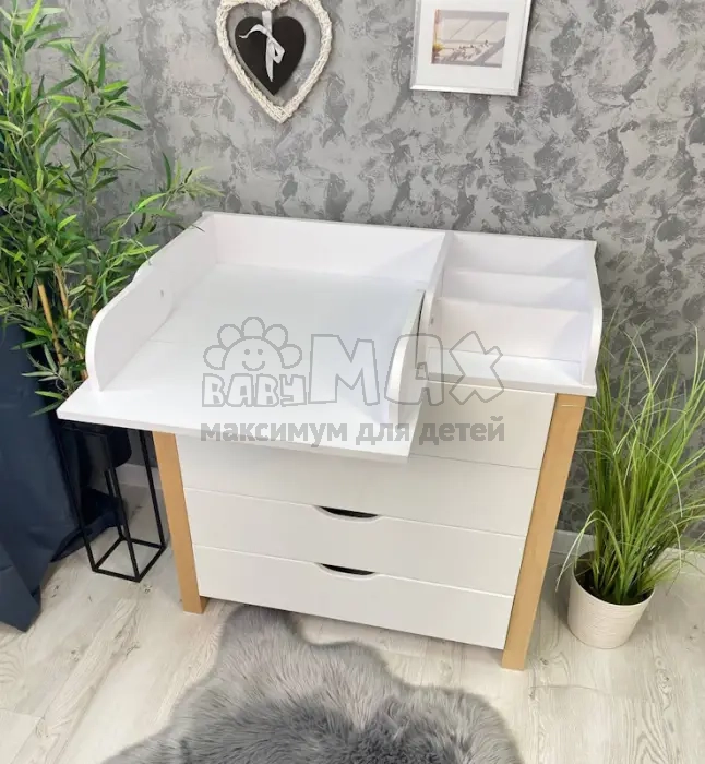 Комод пеленальный Престиж ДСП 90 см Бело-буковый от Babymax – решение для организации пространства детской комнаты. Модель подходит для ухода за младенцем и хранения детских вещей благодаря удобной конструкции.