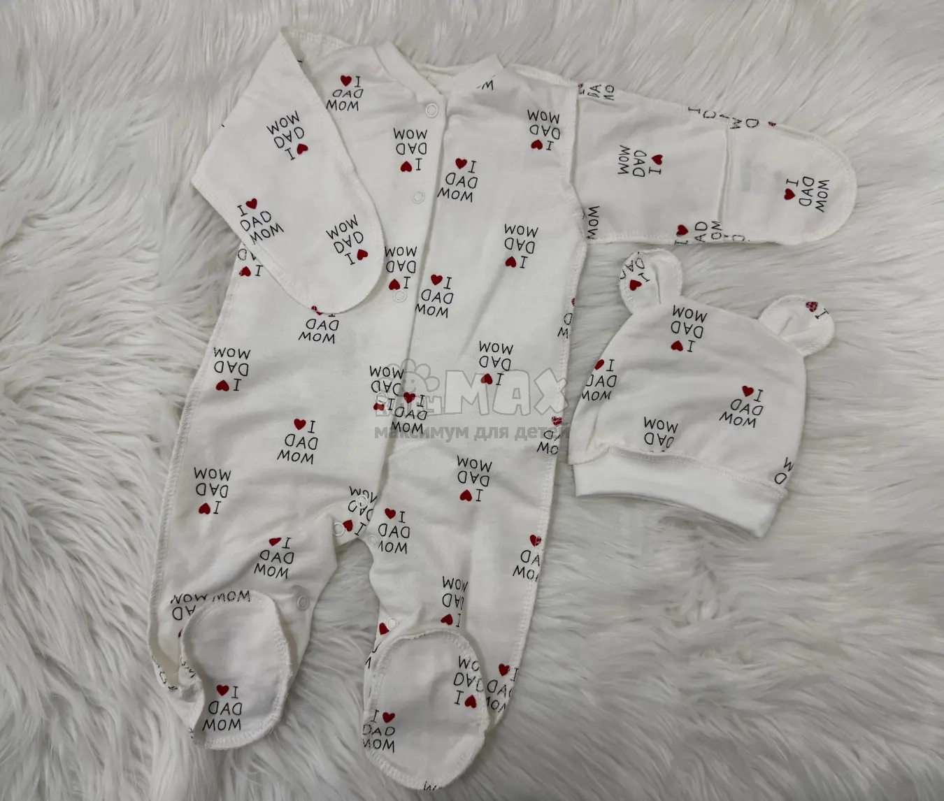 Представленный костюмчик станет отличным выбором для малышей, так как не сковывает движение ребенка и позволяет ему свободно двигаться. Он включает в себя такие атрибуты: распашонка, штанишки и шапочка. Распашонка украшена ушками и мордочкой зайчика на животике. Ручки малыша в безопасности, так как они закрыты при помощи царапок. Закрывается кофточка на кнопочку, с запахом. Штанишки с закрытыми при помощи носочков ножками, не передавливают живот малыша. Шапочка с завязками сможет закрыть ушки малыша.