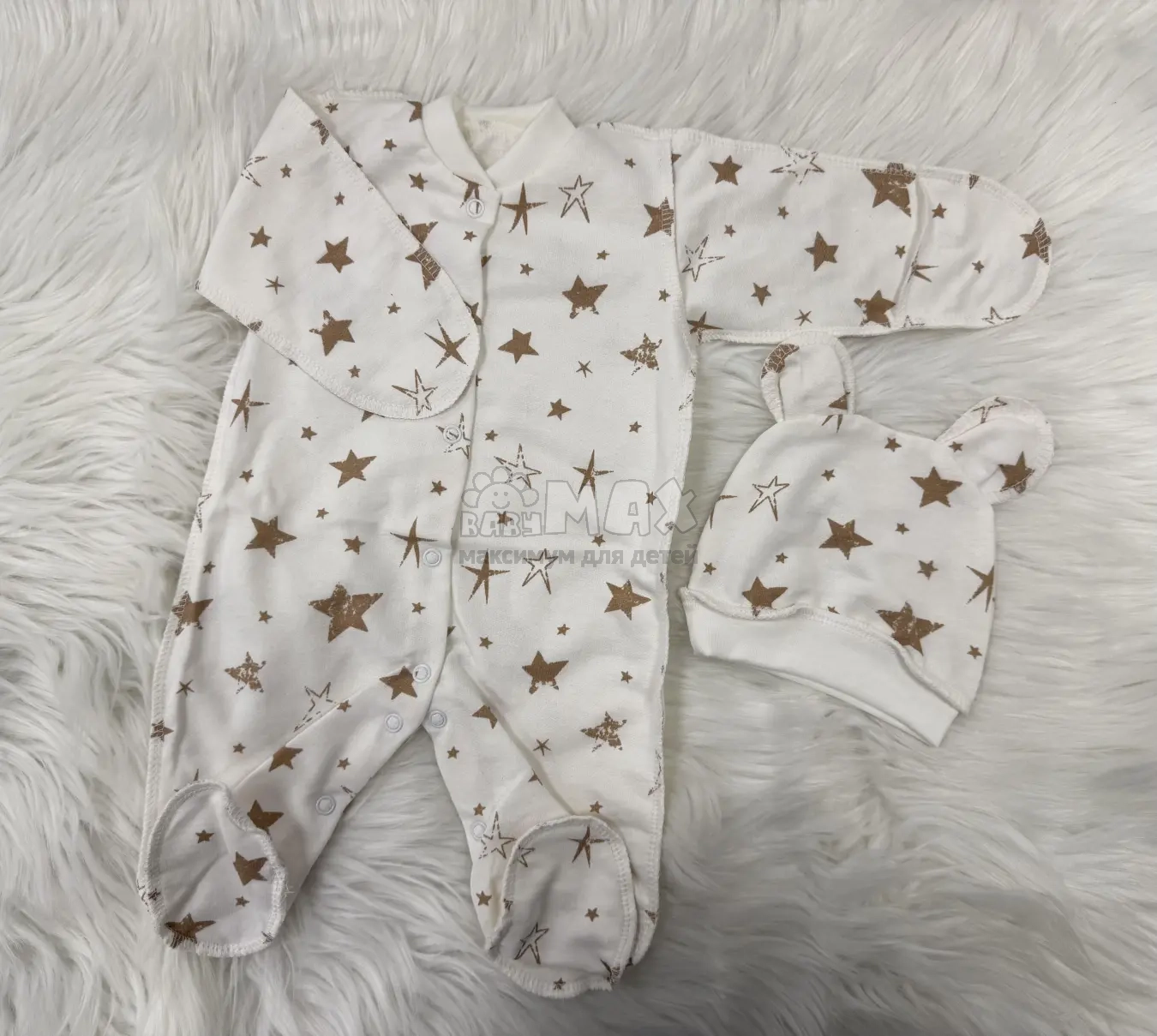 Представленный костюмчик станет отличным выбором для малышей, так как не сковывает движение ребенка и позволяет ему свободно двигаться. Он включает в себя такие атрибуты: распашонка, штанишки и шапочка. Распашонка украшена ушками и мордочкой зайчика на животике. Ручки малыша в безопасности, так как они закрыты при помощи царапок. Закрывается кофточка на кнопочку, с запахом. Штанишки с закрытыми при помощи носочков ножками, не передавливают живот малыша. Шапочка с завязками сможет закрыть ушки малыша.