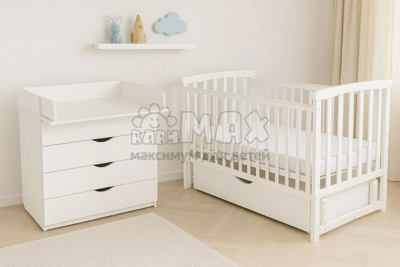 8. Внутренний размер шухляды (ШхВхГ) 78х9х36 см.Дополнительные опции Цена Комплект постельного белья 120х60 см Выбрать Матрас Жакард (кокос, поролон, кокос) 120х60х8 см + 1550 грн Пеленальный матрас с твердой основой Выбрать Пеленальный матрас с мягкой основой Выбрать Наматрасник Выбрать * Оттенок изделий на фотографии может отличаться от реального.
