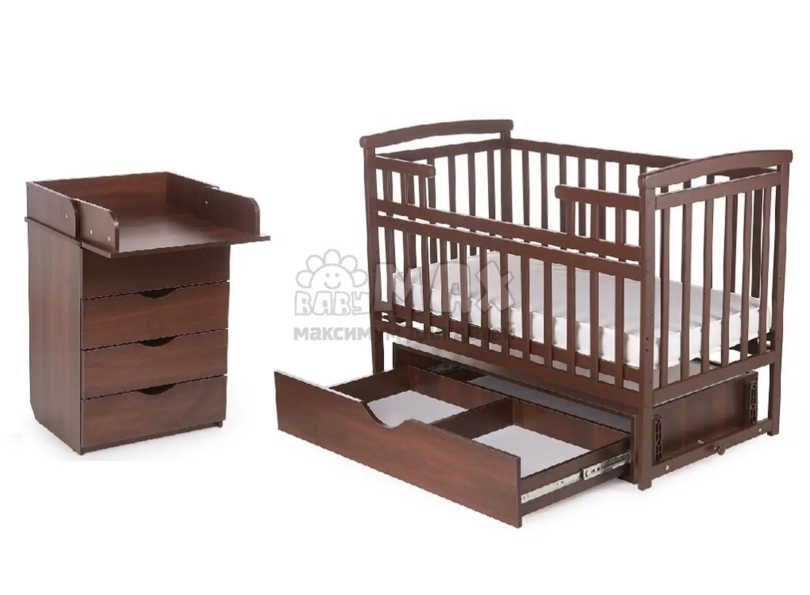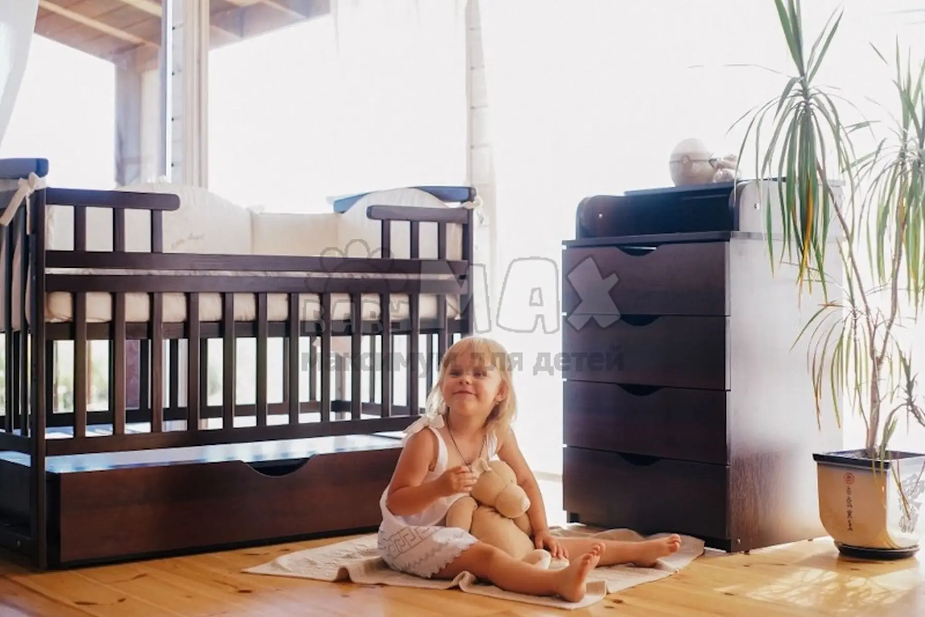 Комплект детская кроватка с ящиком и узкий пеленальный комод DeSon.