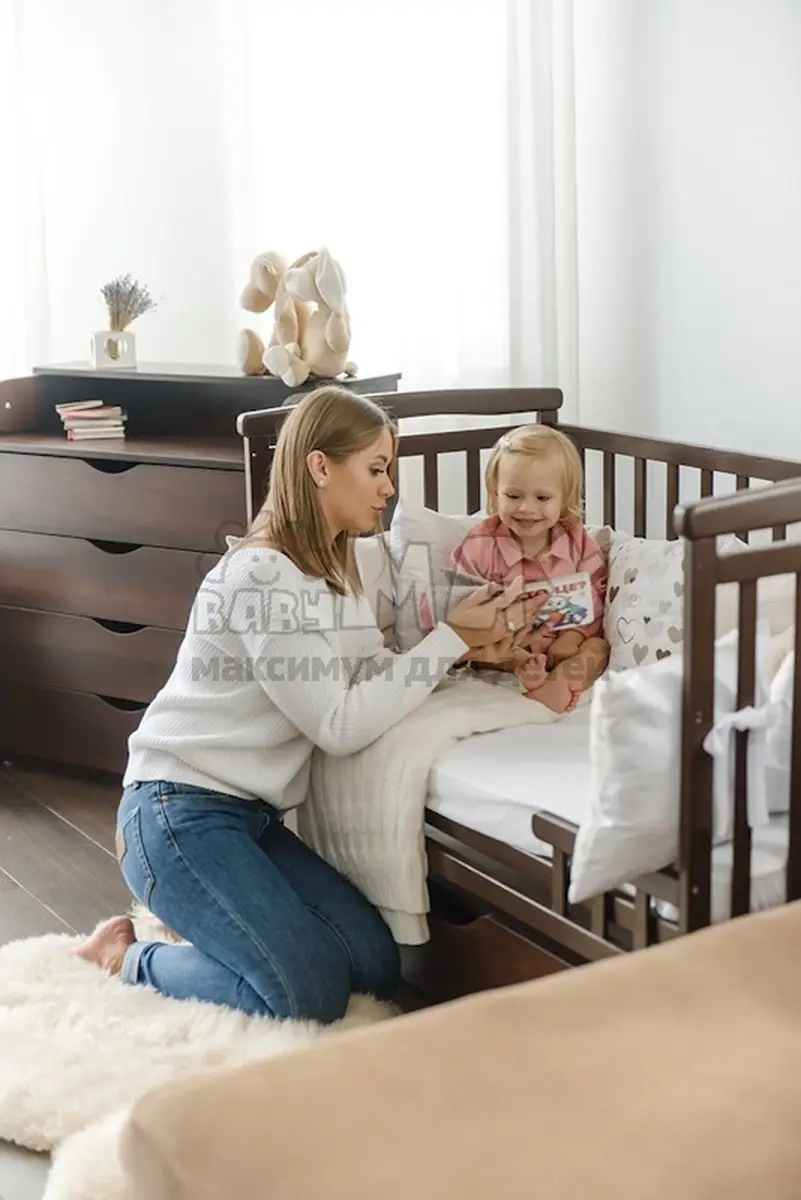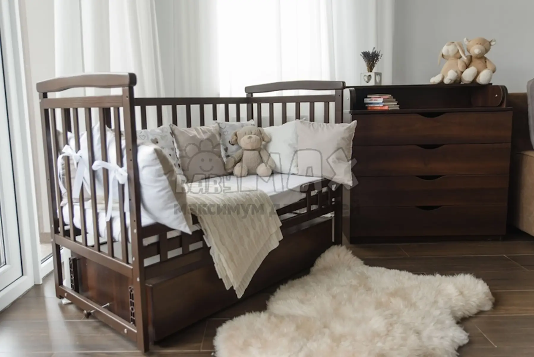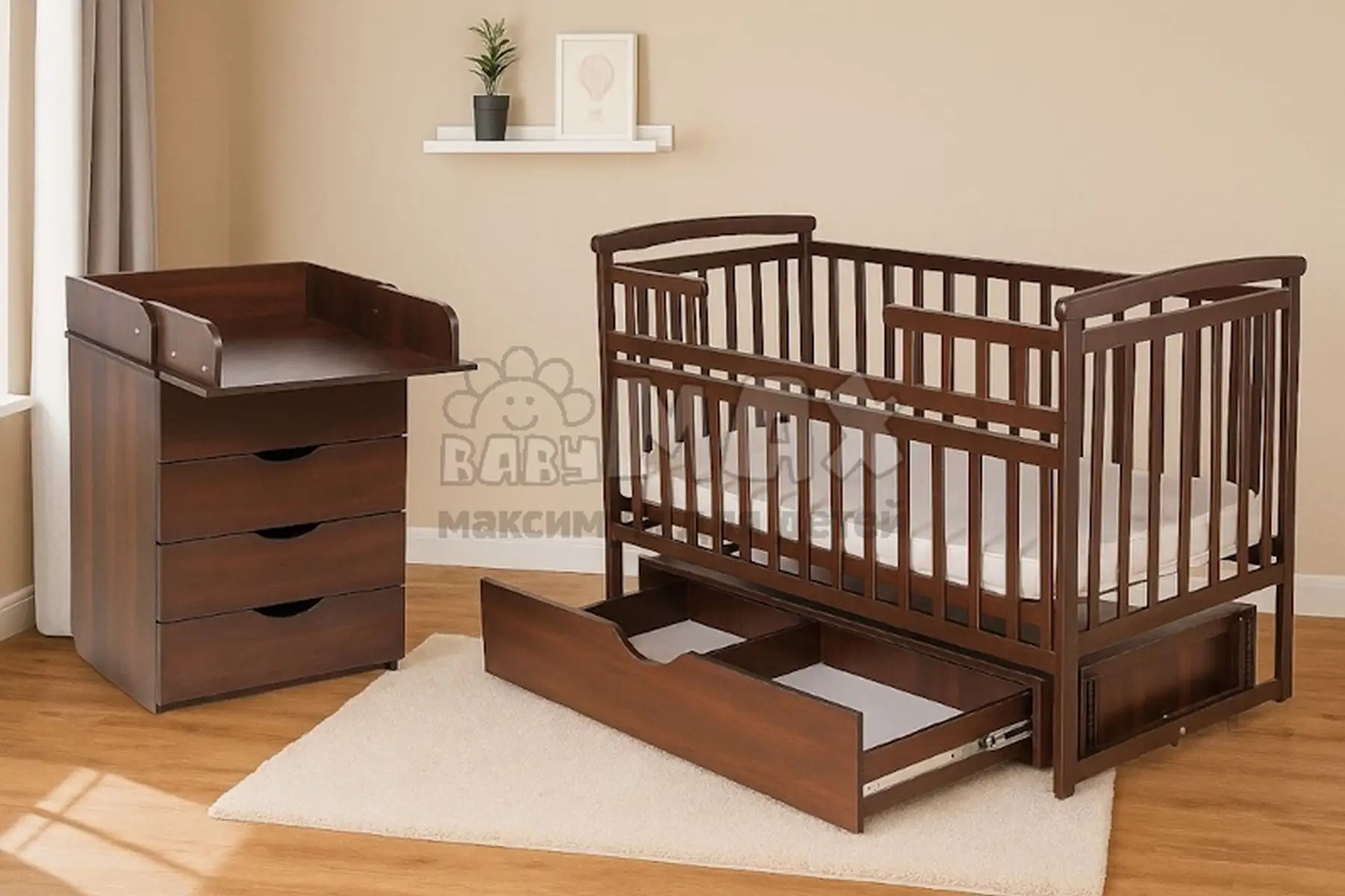 Цветовая гамма «орех» придает мебели благородный вид, делая ее универсальной для любого стиля интерьера — от классики до скандинавского минимализма. Комплект легко сочетается с другими предметами мебели в комнате, создавая единую гармоничную композицию. Оба элемента — и кроватка, и комод — имеют безопасную конструкцию без острых углов и удобную фурнитуру, соответствующую современным требованиям к детской мебели.