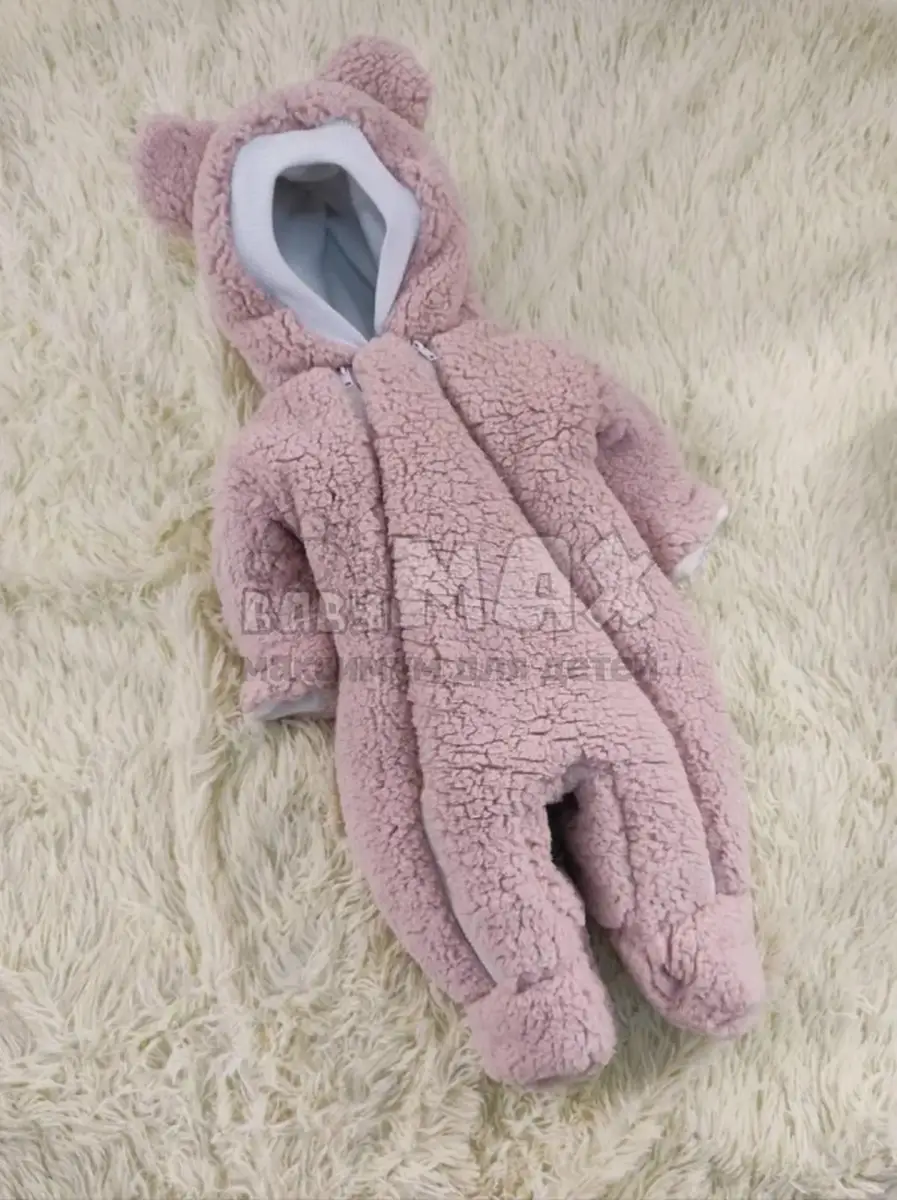 Комплект ШкодаМода с комбинезоном, спальником 56–62р, флис/мех тедди Пудра