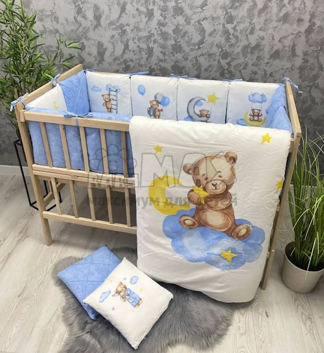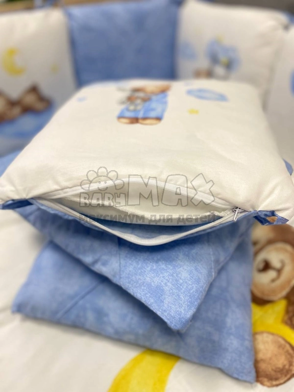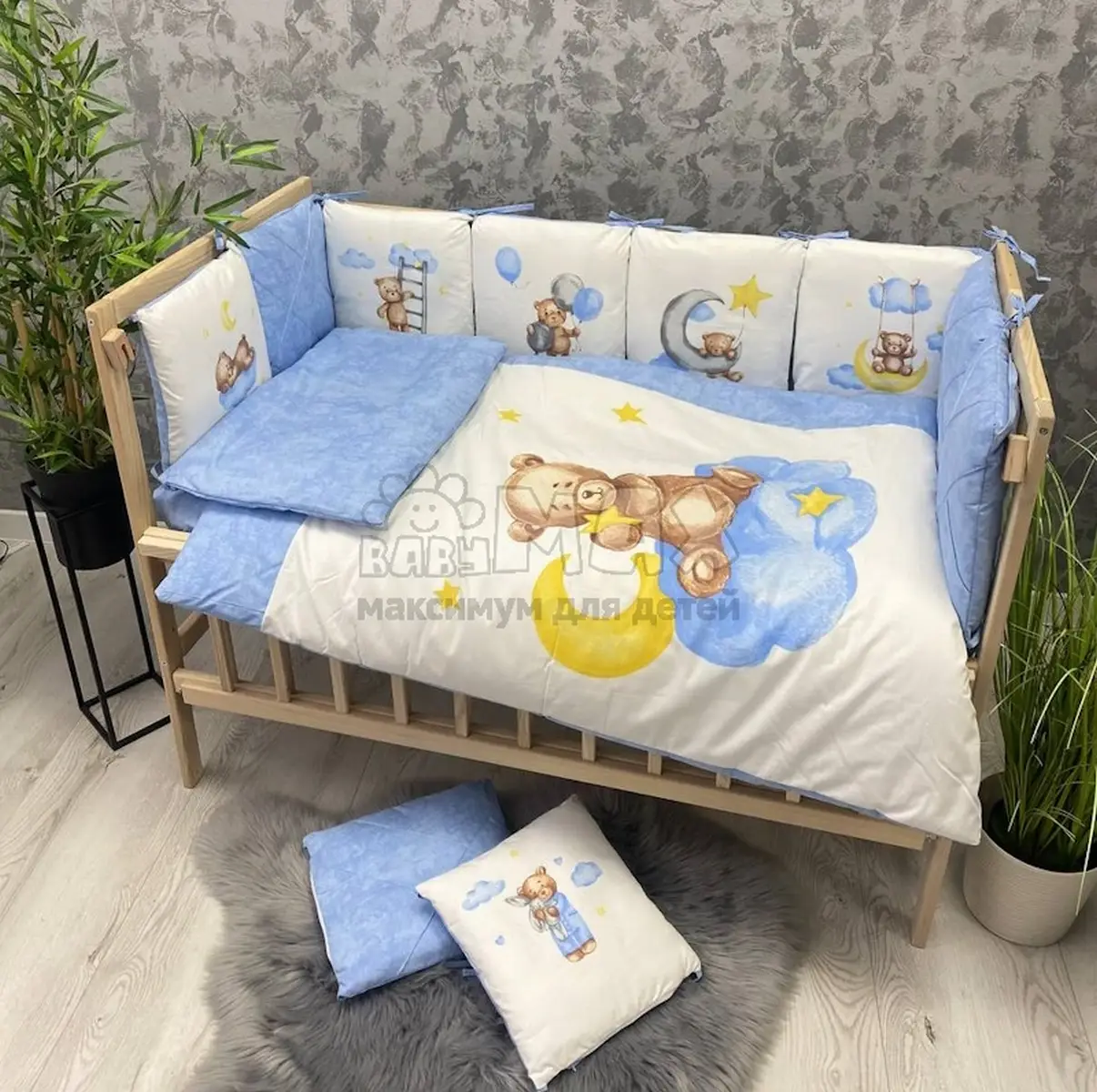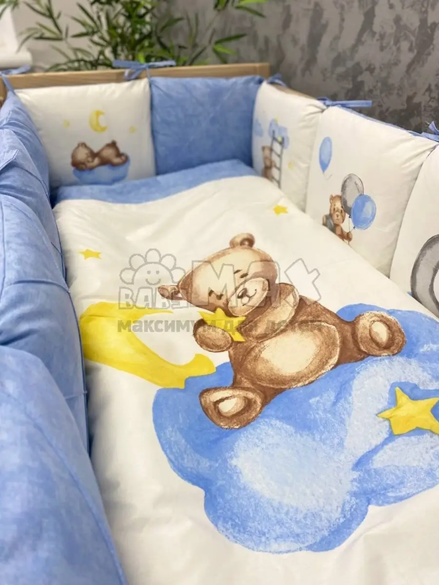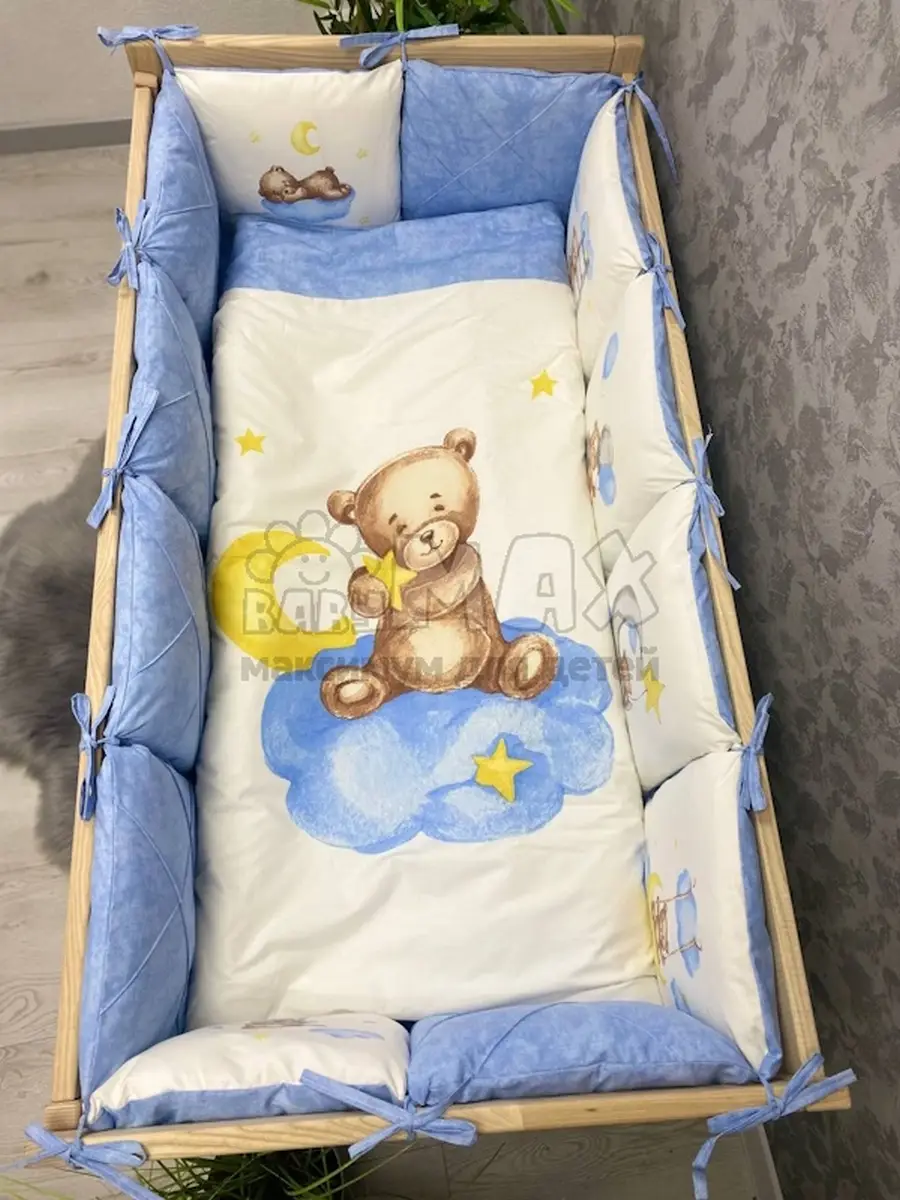 Голубой комплект постельного белья 6в1 Ведмедик Медвеженок.