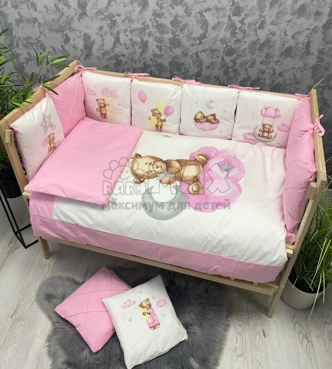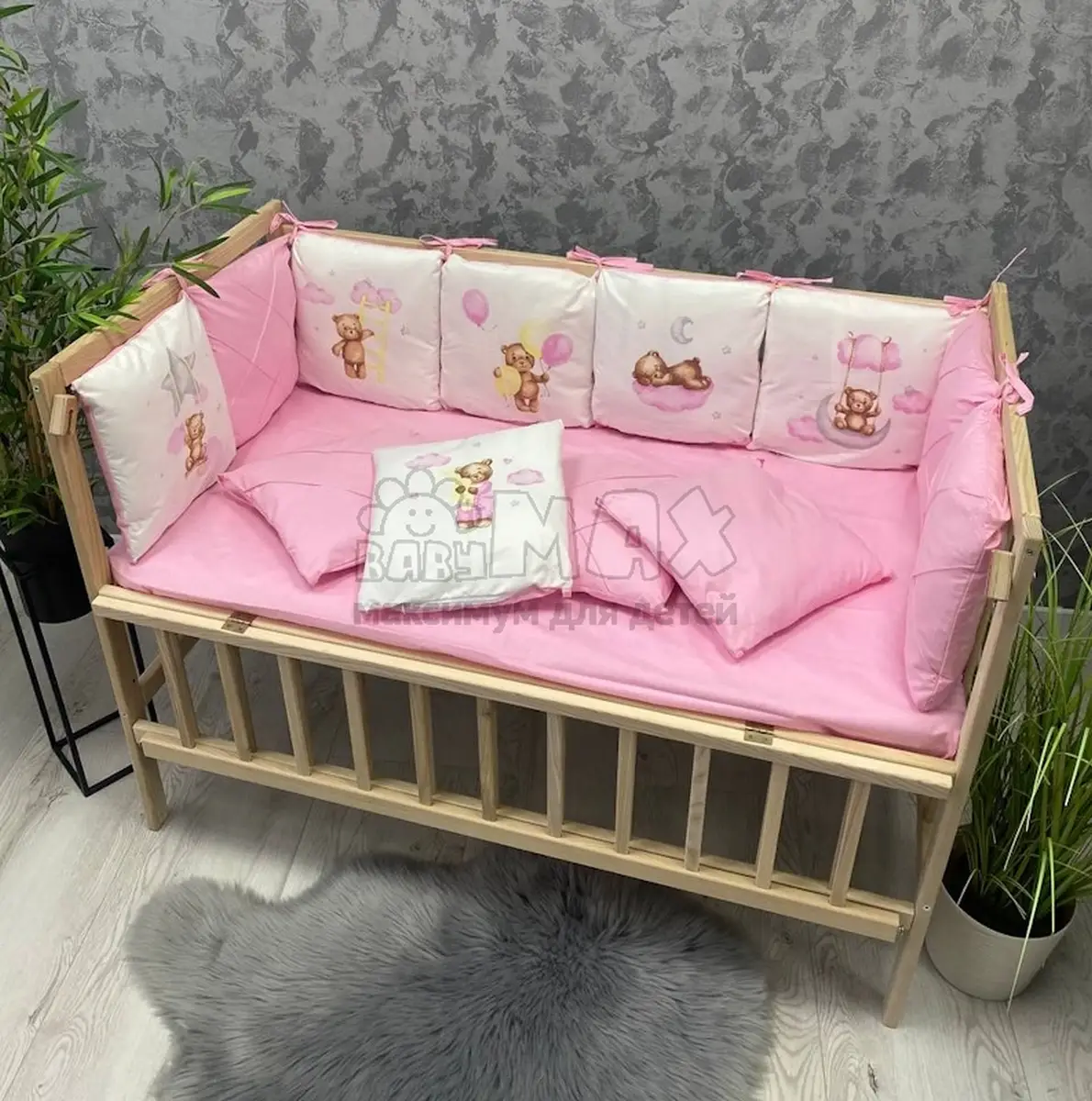 6. Бортики: подушки на молниях 12 шт. (30х30 см, толщиной 4 см).Рекомендации по уходу: