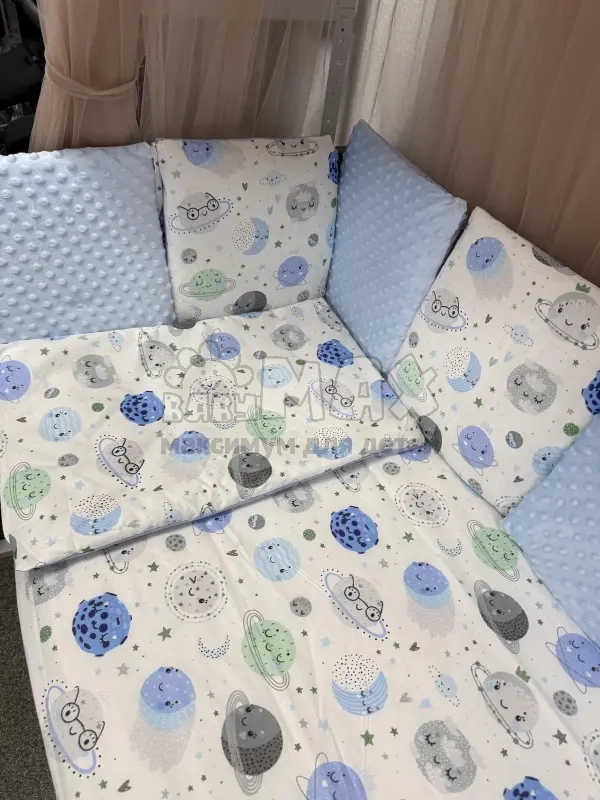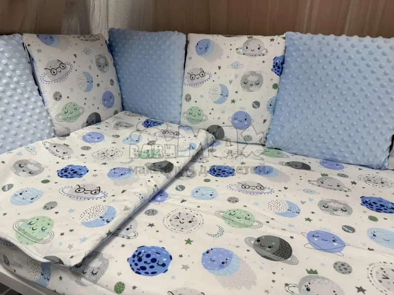 • Комплект подойдет для любой кроватки: прямоугольной (120х60 см), овальной и круглой.