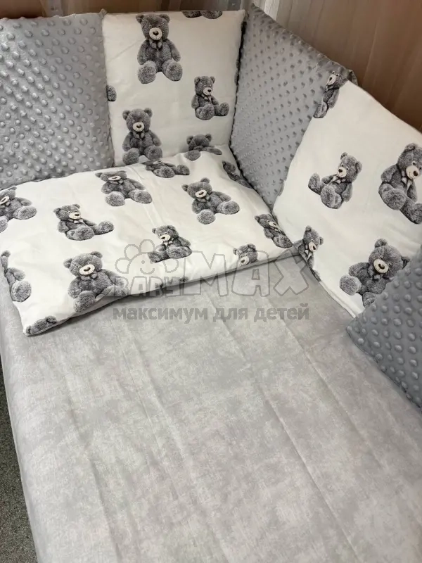 Этот комплект – настоящая находка для заботливых родителей. Он идеально подходит для кроваток любой формы: прямоугольных, овальных и круглых. Мягкий хлопок и нежный плюш подарят вашему малышу ощущение комфорта и безопасности, а качественный наполнитель обеспечит тепло и уют во время сладкого сна.