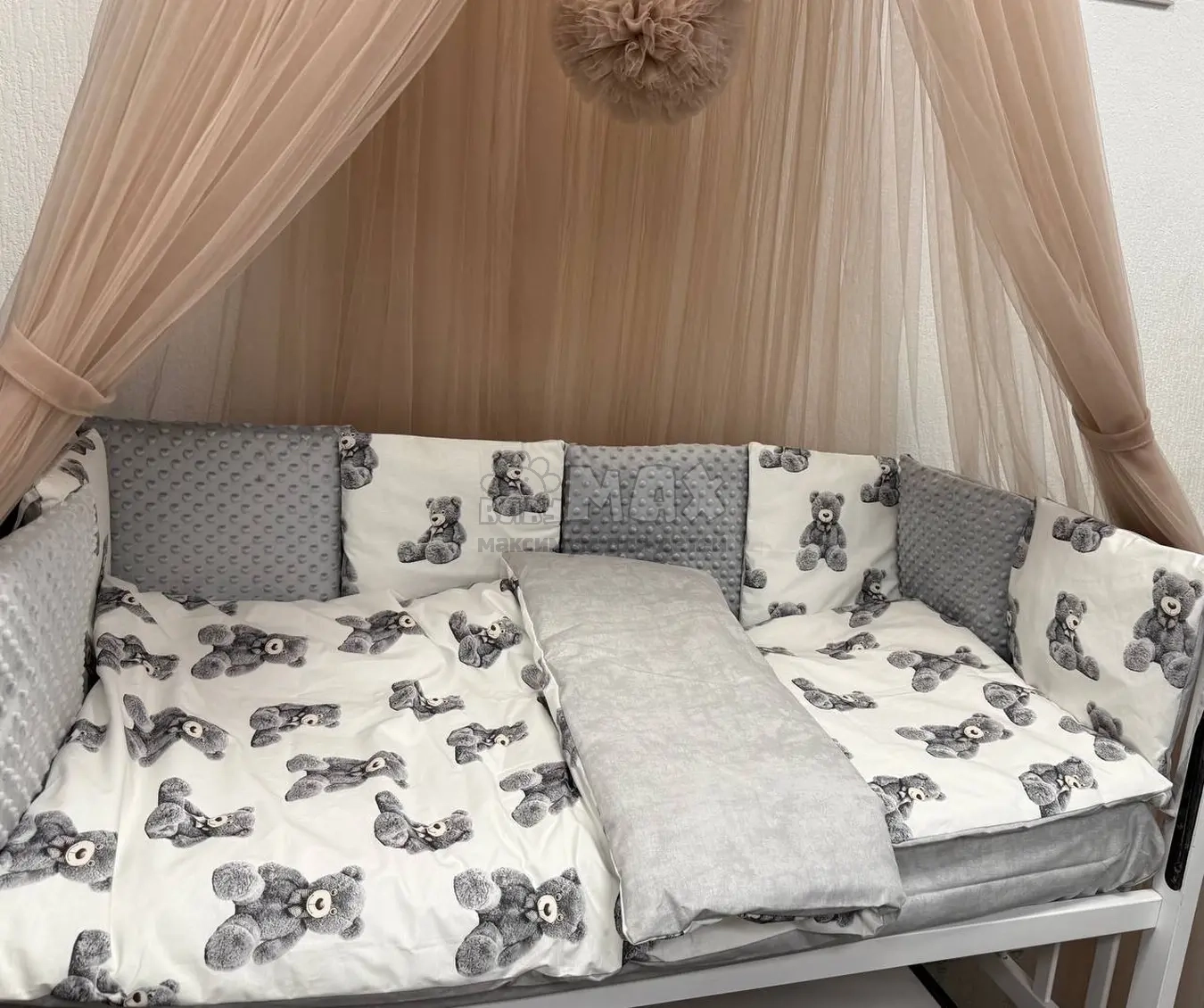 Комфортное и безопасное спальное место для малыша — это не только правильный выбор кроватки и матраса. Также особое внимание стоит обратить на комплект постельного белья. В магазине Babymax представлен широкий выбор комплектов по комплектации, цене и расцветкам. В наличие как комплекты без защитных бортиков и балдахина, так и уютные варианты с балдахином, защитными бортиками и косой. Если Вы в поисках натурального комплекта, который будет нейтральным вариантом как для мальчика так и для девочки, настоятельно рекомендуем обратить внимание на данный комплект.