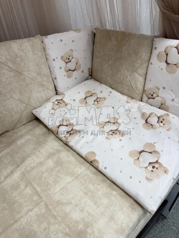 Бежевый комплект постельного белья 6в1 Мишка с сердечком.