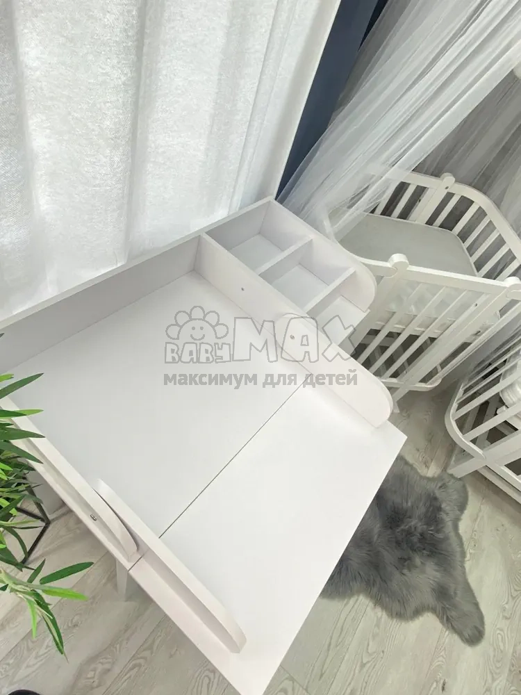 9. Варианты пеленаторов: узкий стационарный, узкий откидной и широкий откидной.Дополнительные опции Цена Комплект постельного белья 120х60 см Выбрать Матрас Жакард (кокос, поролон, кокос) 120х60х8 см + 1550 грн Пеленальный матрас с твердой основой Выбрать Пеленальный матрас с мягкой основой Выбрать Наматрасник Выбрать * Оттенок изделий на фотографии может отличаться от реального.