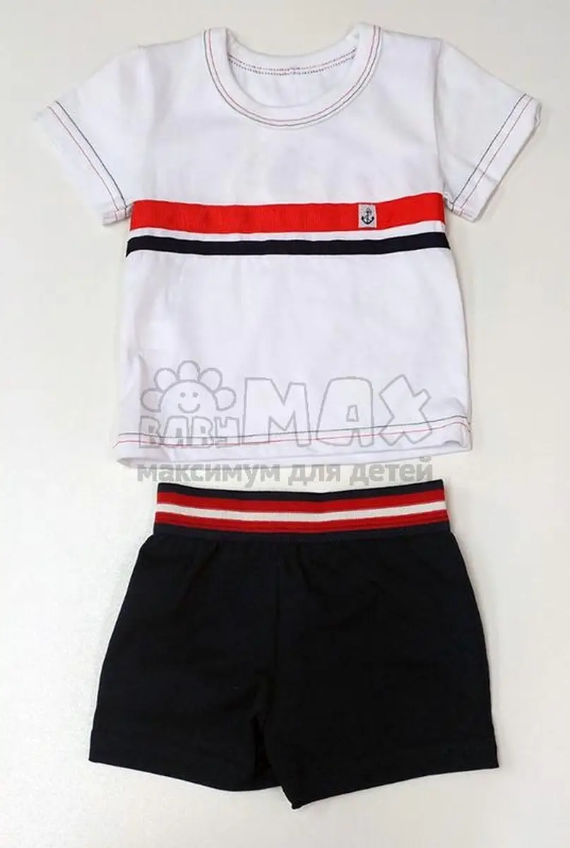 Отечественная компания которая занимает производством качественной одежды для маленьких карапузов. Комплект состоит из: шортов и футболки. Все изделия выполнены из хлопка. Легкая футболка, свободного кроя. С минималистическими узорами красных и синих цветов. Шорты на резинке, не передавливает тело ребенка. Без дополнительного декора, что делает их максимально безопасными для младенца.