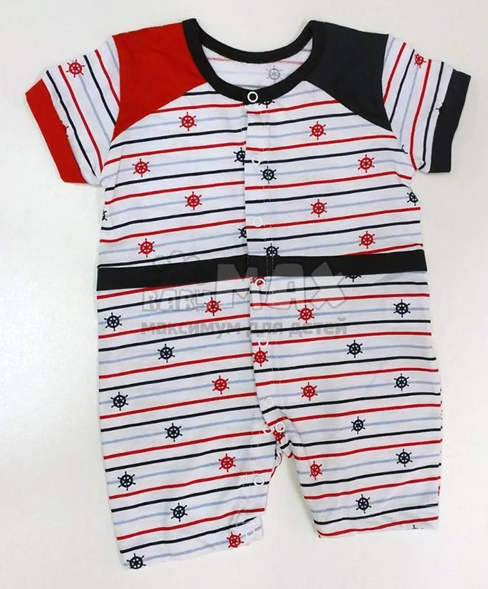Маленьке сонечко – популярный, отечественный бренд одежды для новорожденных. Легкий и яркий песочник – лучший выбор для малыша. Данный песочник изготовлен в 68-74 размере. Яркие полоски красных, синих и белых цветов еще и с принтами. Малыш по достоинству оценит не только комфорт, но и яркость изделия. В виде принта изображен штурвал корабля. Песочник в морской тематике, универсальный. Он подойдет как для прогулок на улице, так и для использования дома.