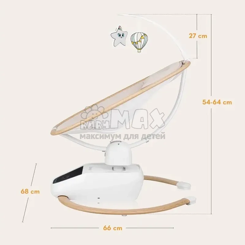 - Комплектация: 2 сидения (люлька, качель), пульт ДУ, подушка, 3 игрушки, USB - кабель