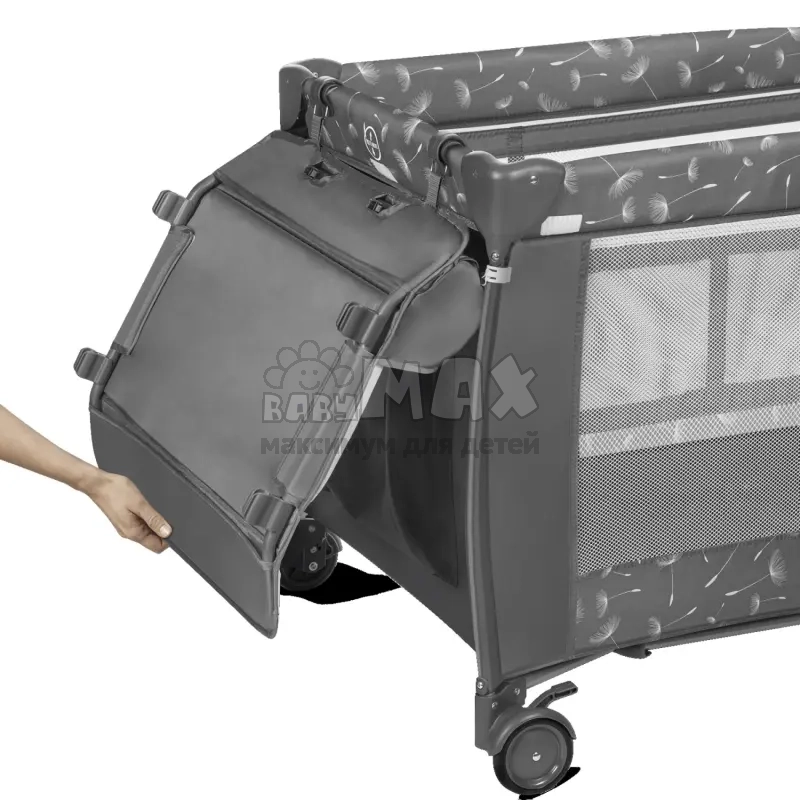 3. Два колеса со стопором позволяют легко перемещать манеж по дому.