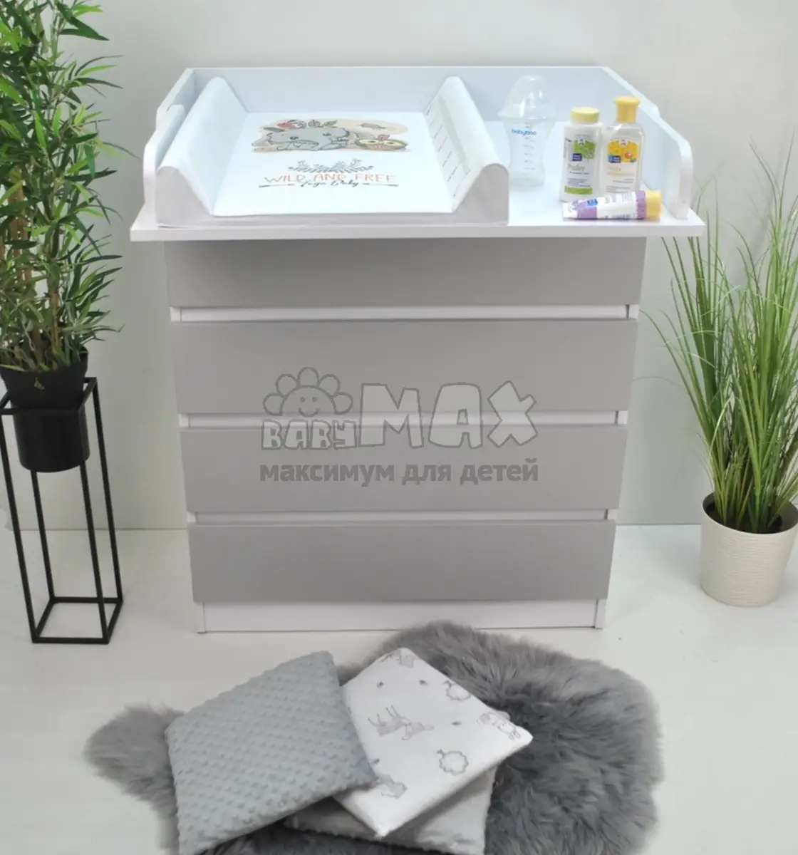 2. Пеленальная зона имеет ограничители по периметру для безопасности.