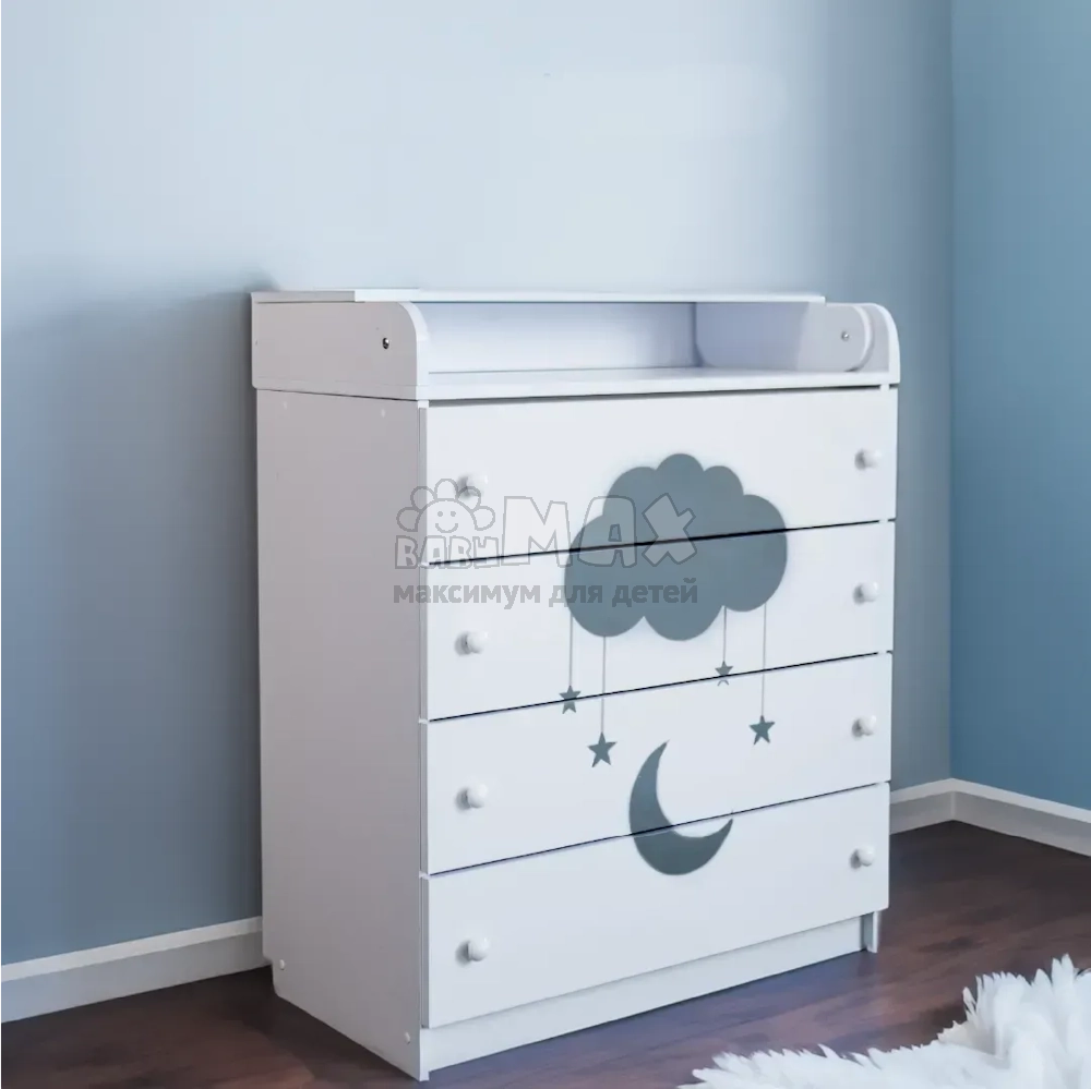 Этот комод изготовлен из ЛДСП — прочного и устойчивого к износу материала, сохраняющего свой вид даже при интенсивном ежедневном использовании. Ширина 800 мм обеспечивает удобную поверхность для пеленания, предусматривая пространство для движения рук, аксессуаров и вещей рядом с малышом.