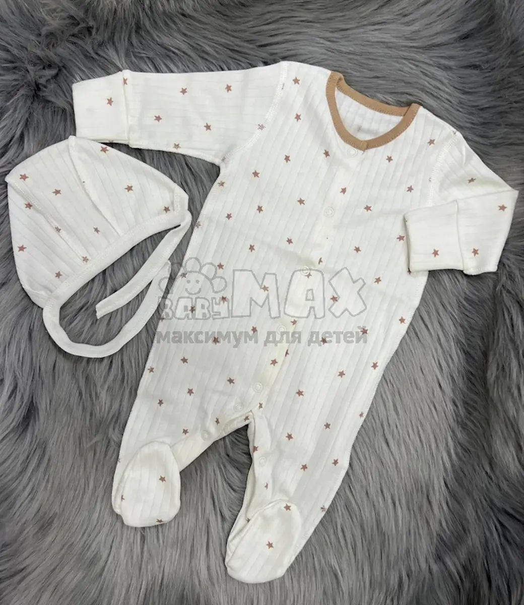 - Комплект: шапочка + распашонка + ползунки
