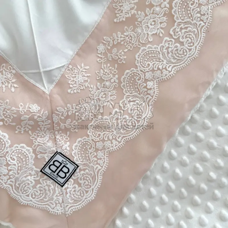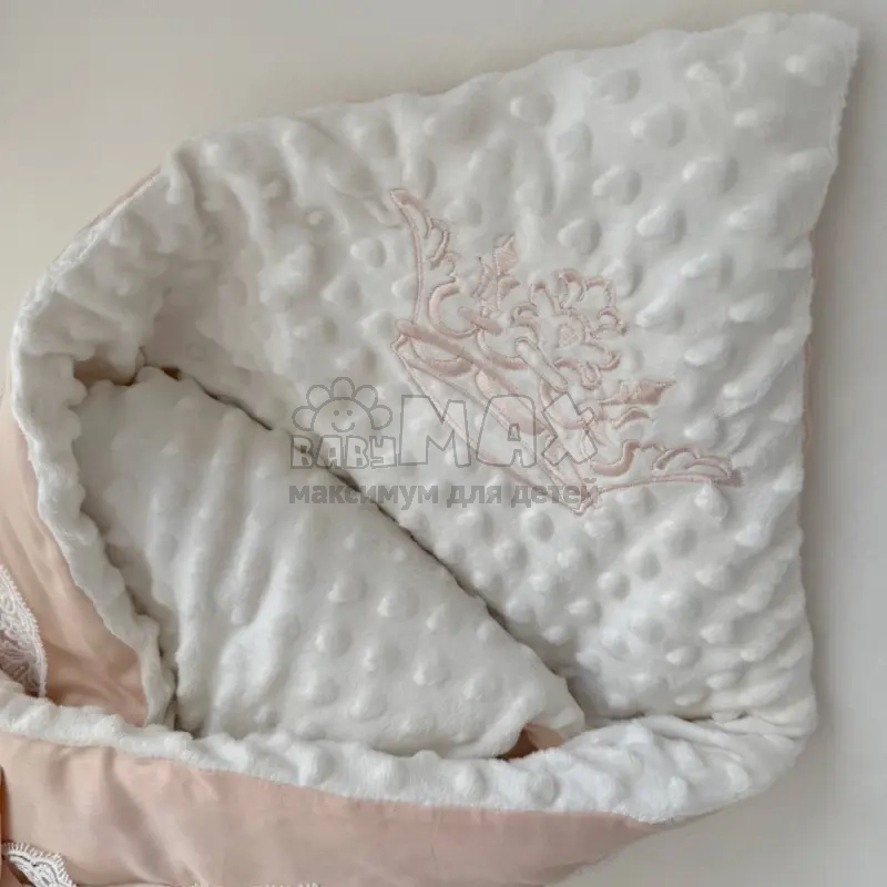 Плюшевый конверт на выписку с вышивкой Кремовый.