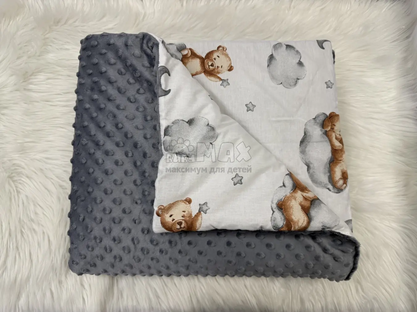 Плед Ведмедик Медвежонок на облачках 80×80 см, плюш Серый