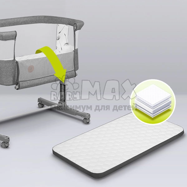 Кроватка устанавливается рядом с родительской кроватью и надежно фиксируется специальными ремнями. Она может выполнять сразу 3 функции: