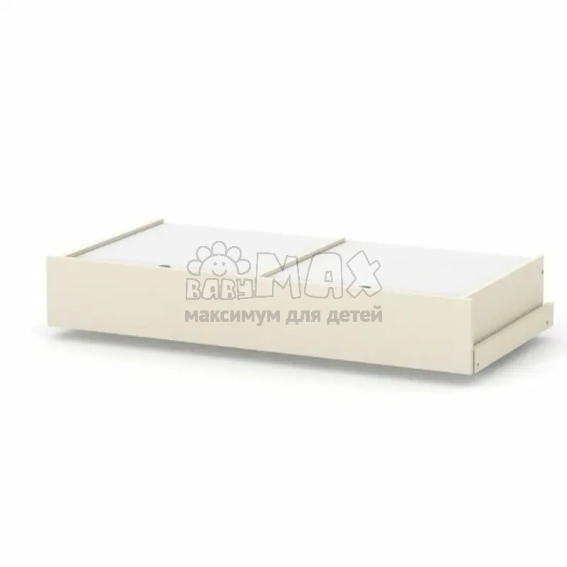 Ящик изготовлен из прочного материала — древесины или ламинированного ДСП — с аккуратной отделкой, без шероховатостей или острых углов. Направляющие установлены на роликах или шариковых механизмах, обеспечивающих плавное выдвижение и защищающих от заклинивания. Конструкция продумана так, чтобы вмещать стандартный объем вещей — пеленки, комплекты постельного белья, сменную одежду и другие мелочи, которые всегда нужны возле кроватки.