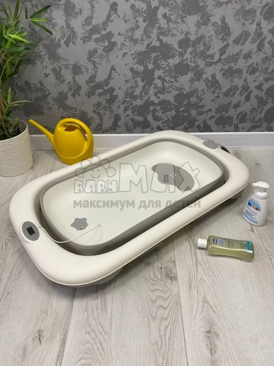 Компактная ванночка для младенца с термометром.