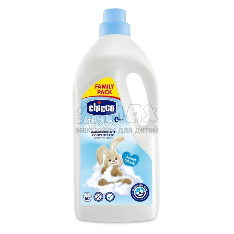 Итальянский бренд Chicco хорошо известен родителям благодаря своей безопасной, гипоаллергенной косметикой для самых маленьких. Но помимо гигиены малыша, бренд позаботился и о стирке детских вещей. Со смягчителем для ткани Chicco Sensitive Sweet Talcum теперь одежда будет не только мягкой и приятной на ощупь, но и будет очень приятно пахнуть.
