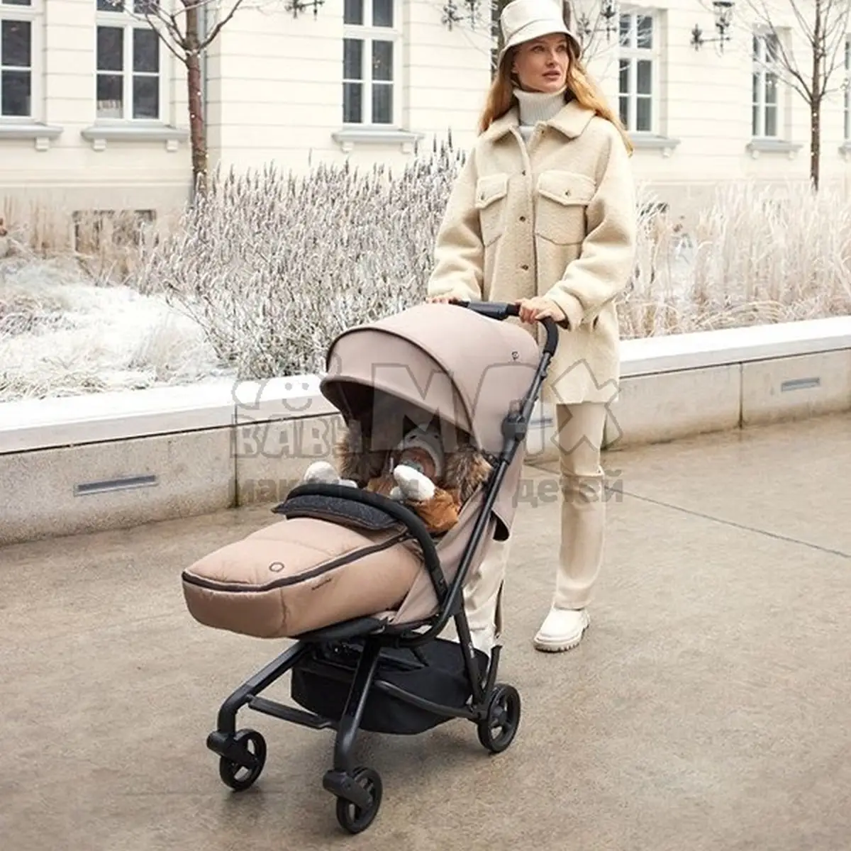 - Тщательно закрывает коляску по всему периметру